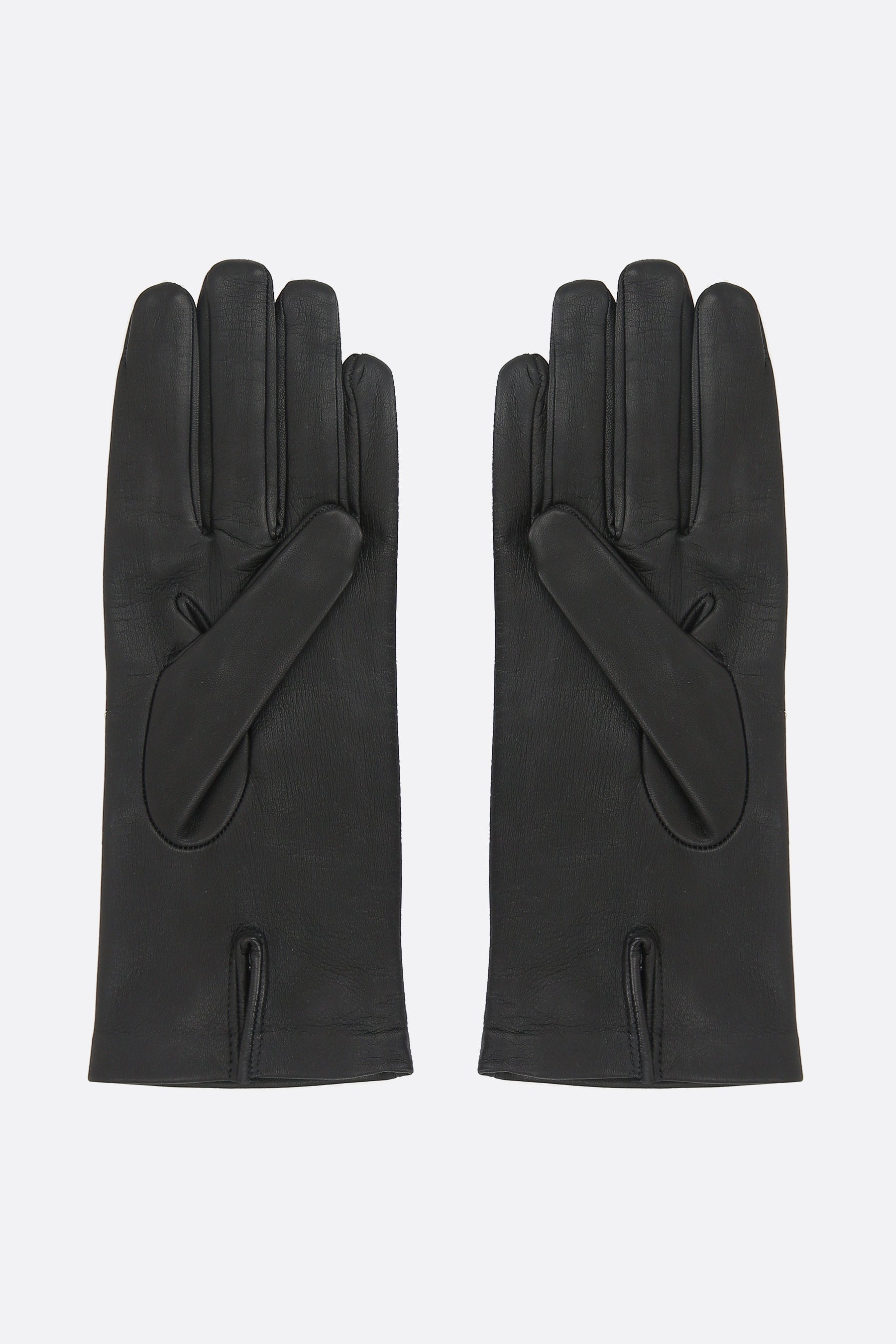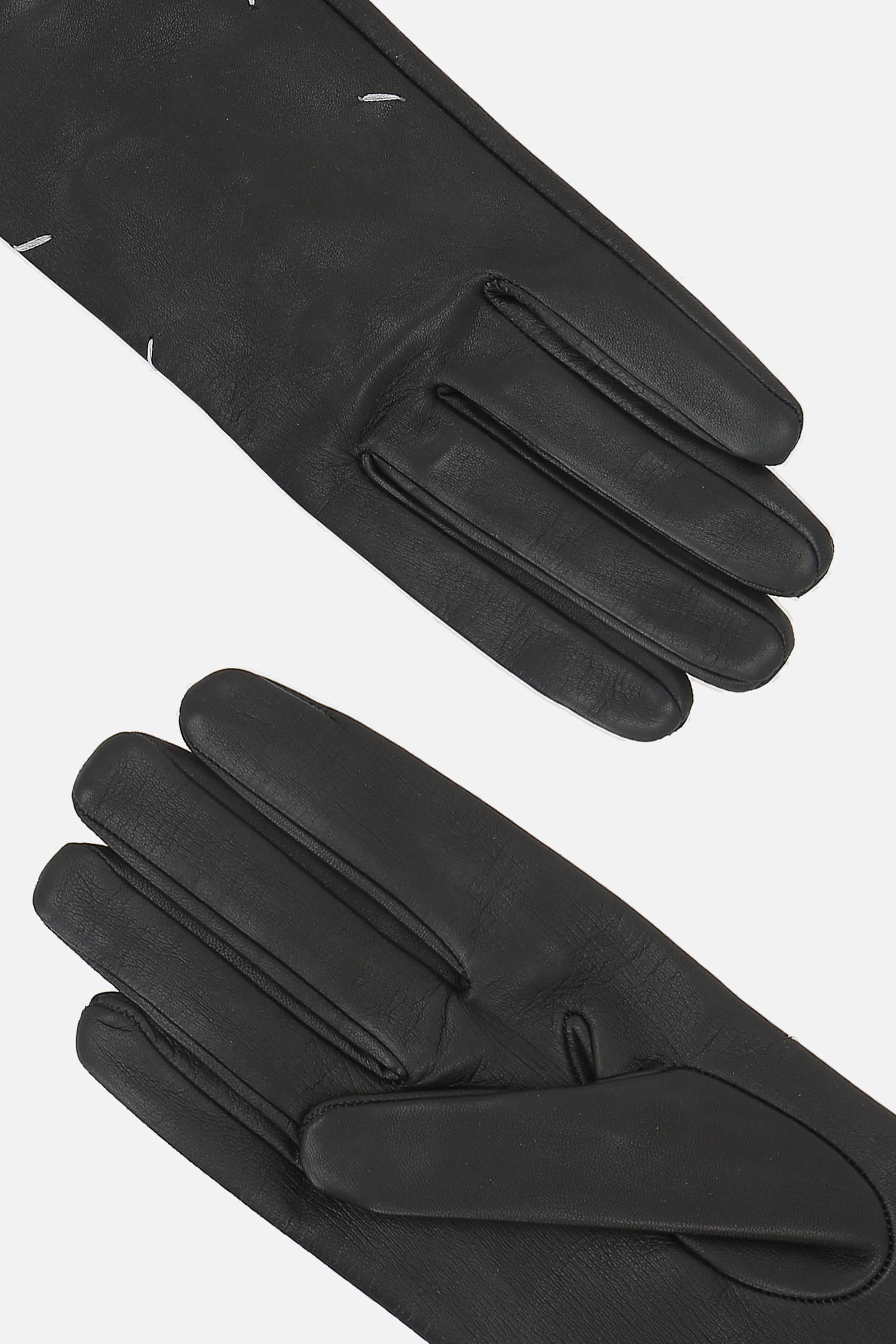 Gloves by Maison Margiela crafted from soft black leather, featuring a wrist slit and the iconic Four Stitches detail on the upper side.