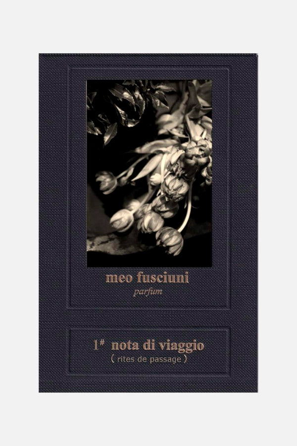 Meo Fusciuni's Eau de parfum 100 ml characterized by the following olfactory notes: grapefruit, black pepper, bergamot, ylang-ylang, geranium, rosewood, benzoin, vetiver, sandalwood, patchouli and incense.