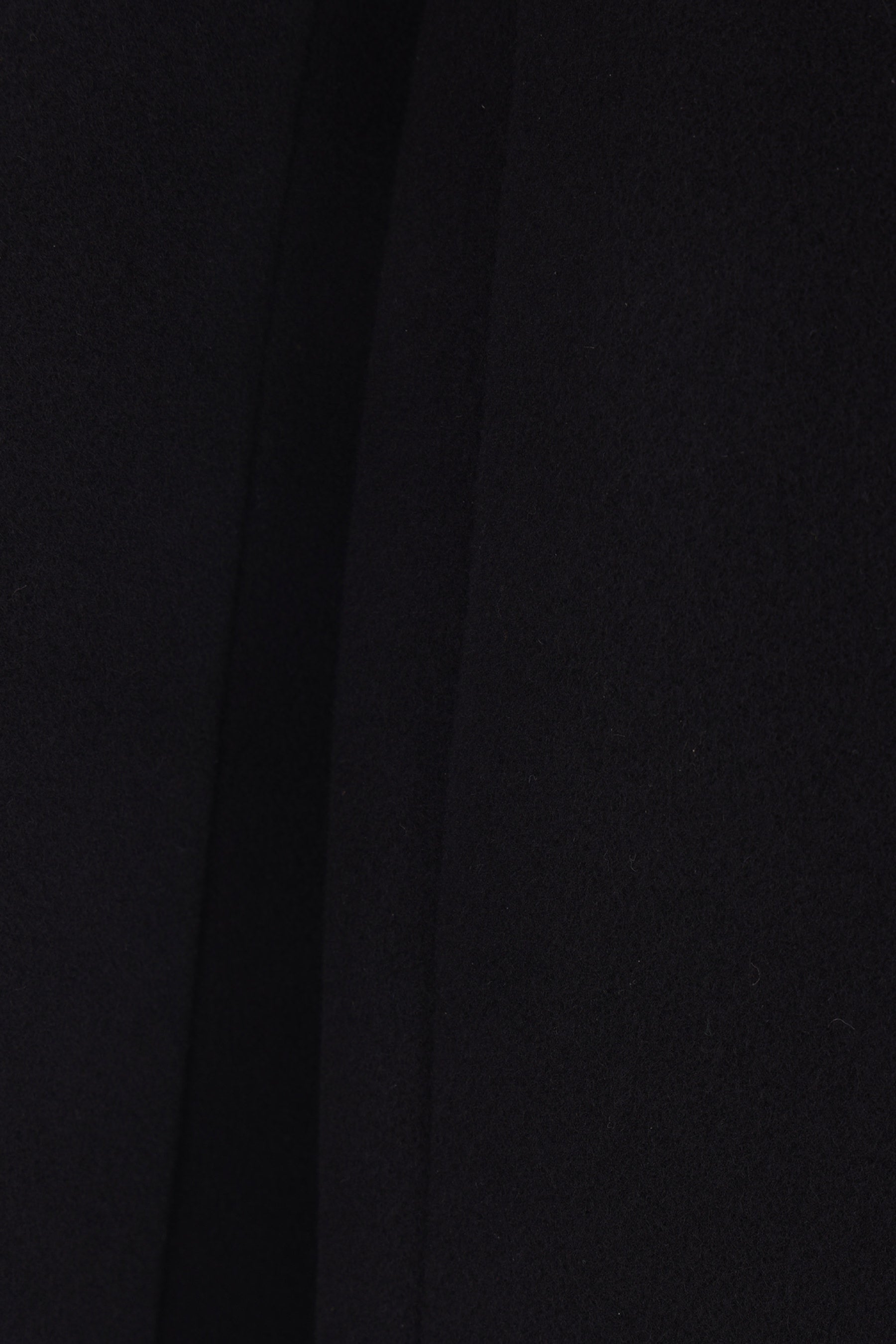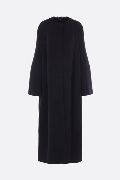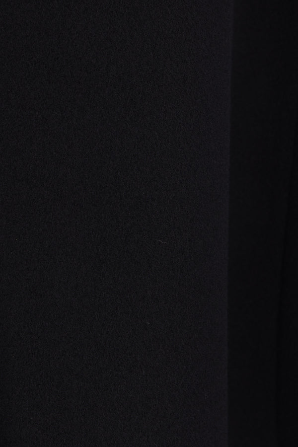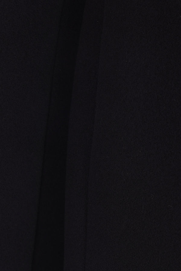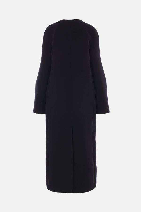 Toteme coat made of black wool blend. Featuring a crew neckline, long bell sleeves, concealed side pockets, central back vent, and a fully lined interior.