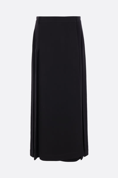 Toteme pleated skirt crafted in black pleated viscose. Featuring wrap closure with hooks and button, and unlined interior.
