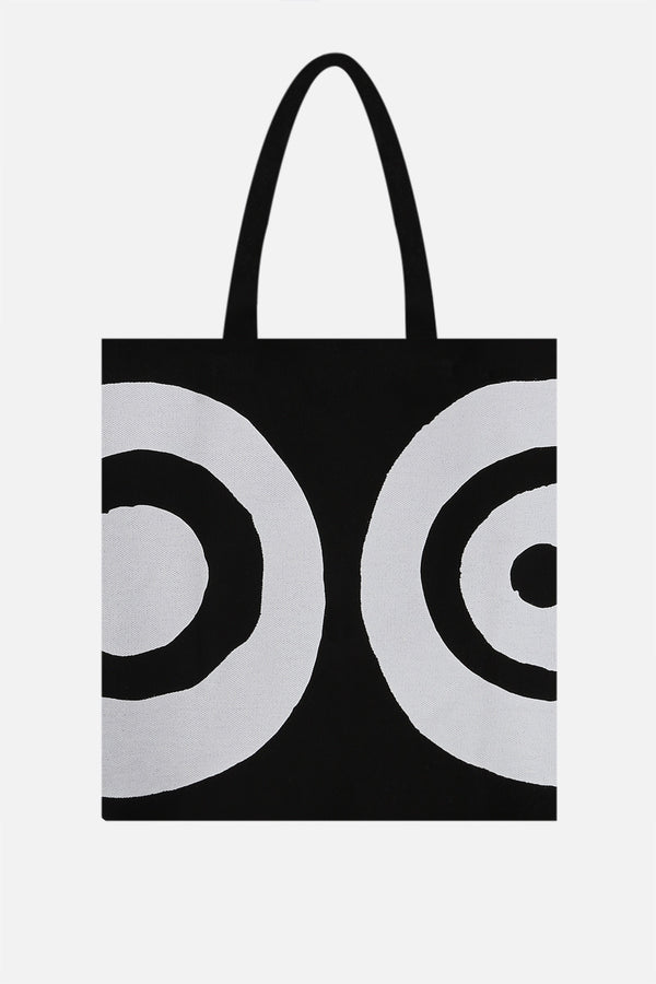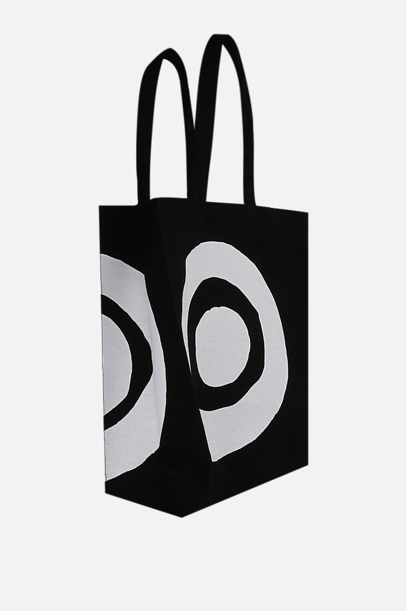 10 Corso Como's iconic shopping bag crafted in black cotton canvas with contrasting circles print. It features double handle and unlined interior.
