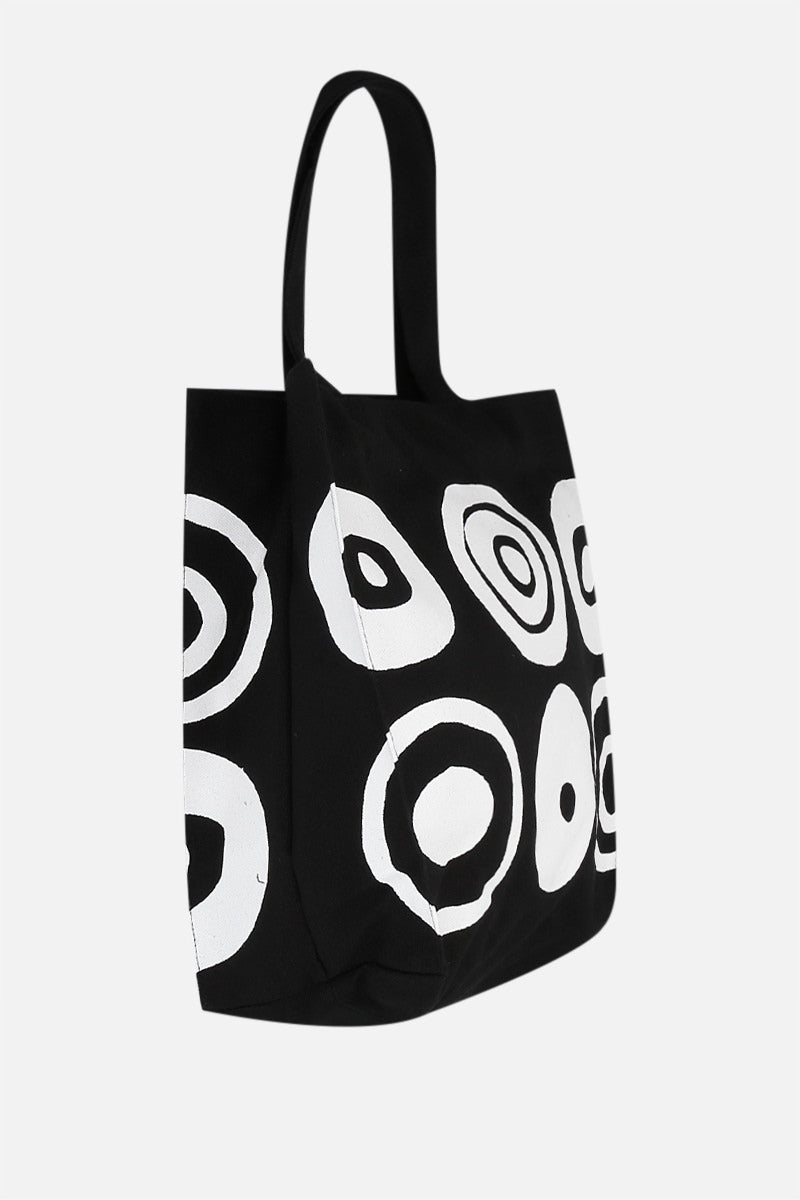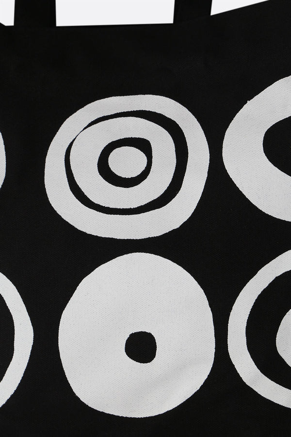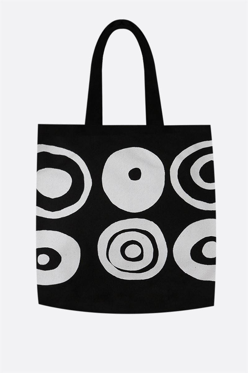 10 Corso Como's iconic shopping bag crafted in black cotton canvas with contrasting circles print. It features double handle and unlined interior.
