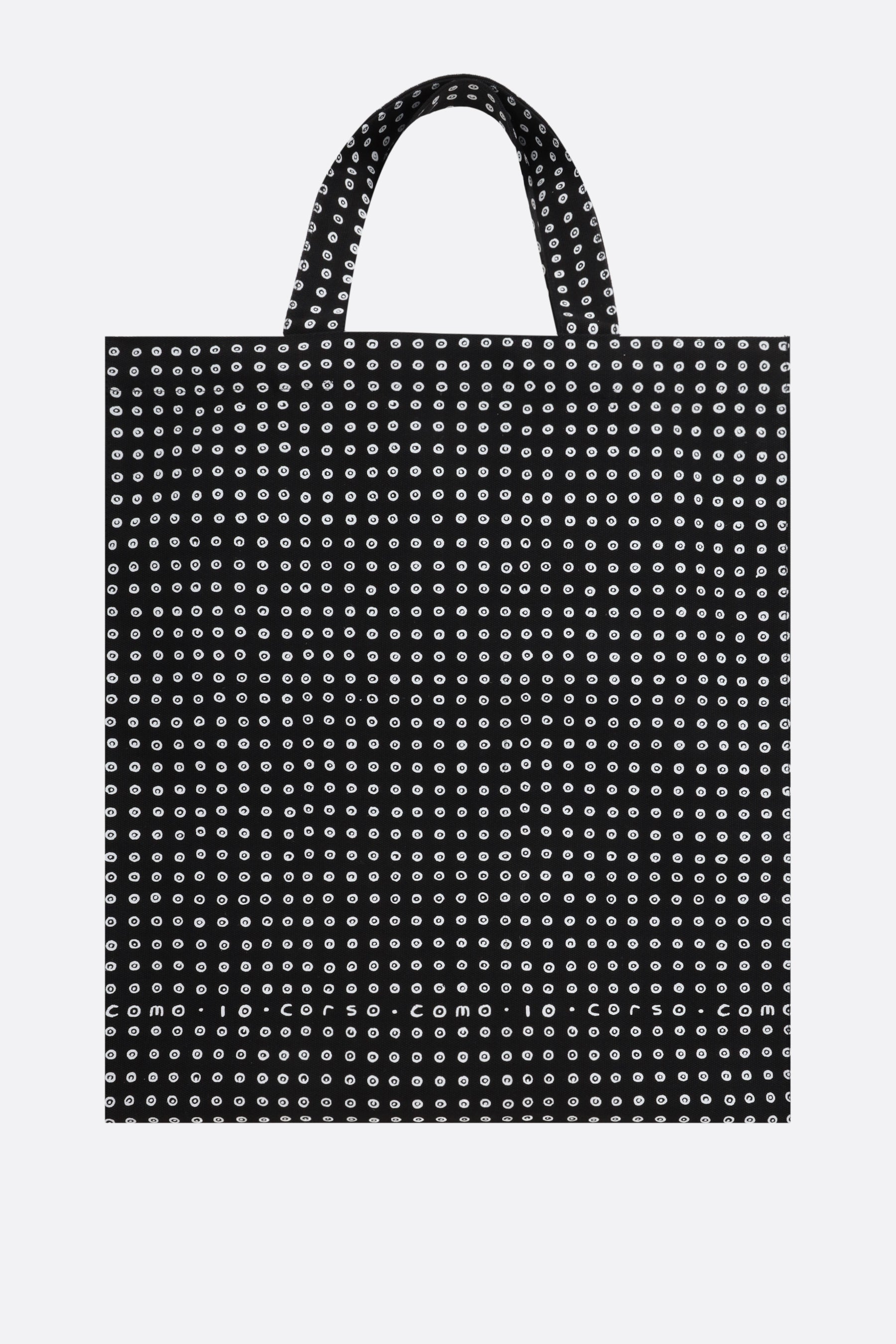 10 Corso Como's shopping bag crafted in black cotton canvas with contrasting signature circles and logo print. It features double handle and unlined interior.