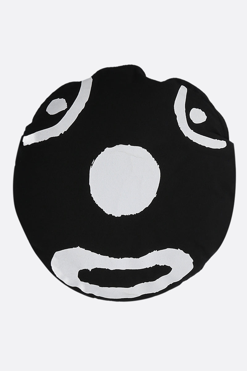 10 Corso Como's cool pillow crafted in black cotton canvas with contrasting Smile print. It features zip opening on the side.