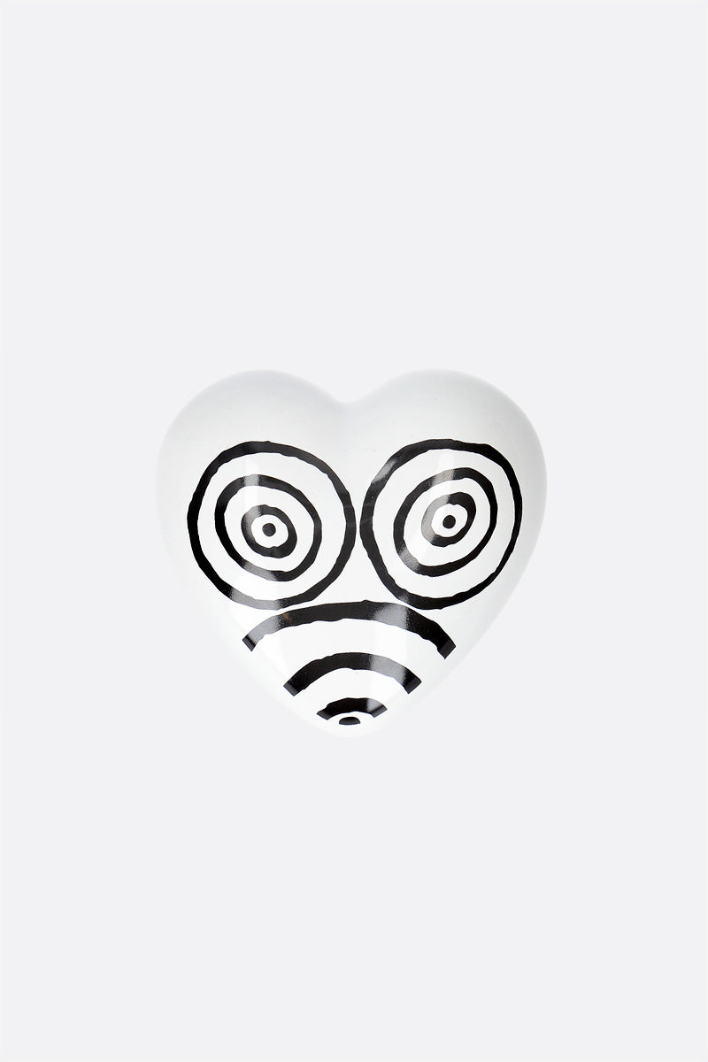 10 Corso Como heart shaped paper weight crafted in white glized ceramic and embellished with the exclusive Circle Eyes graphic and 10 Corso Como logo.