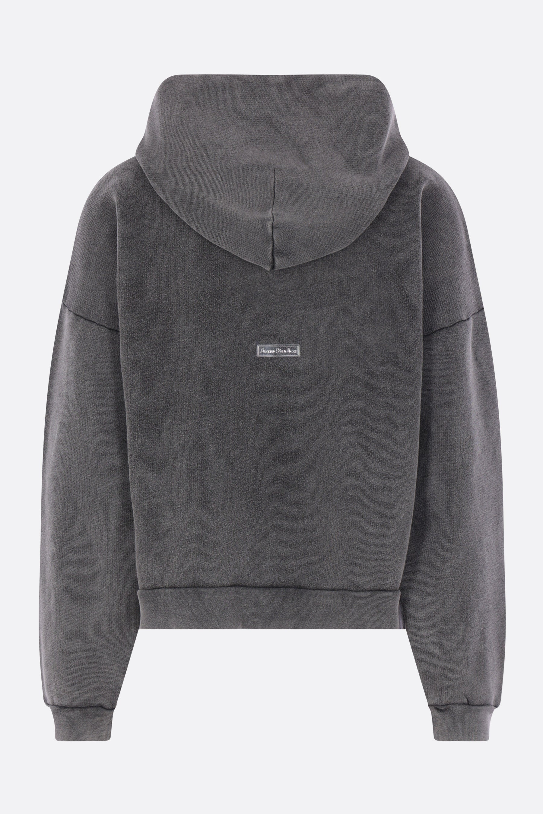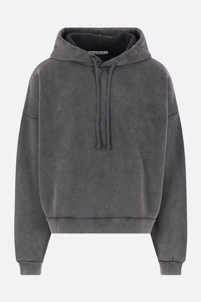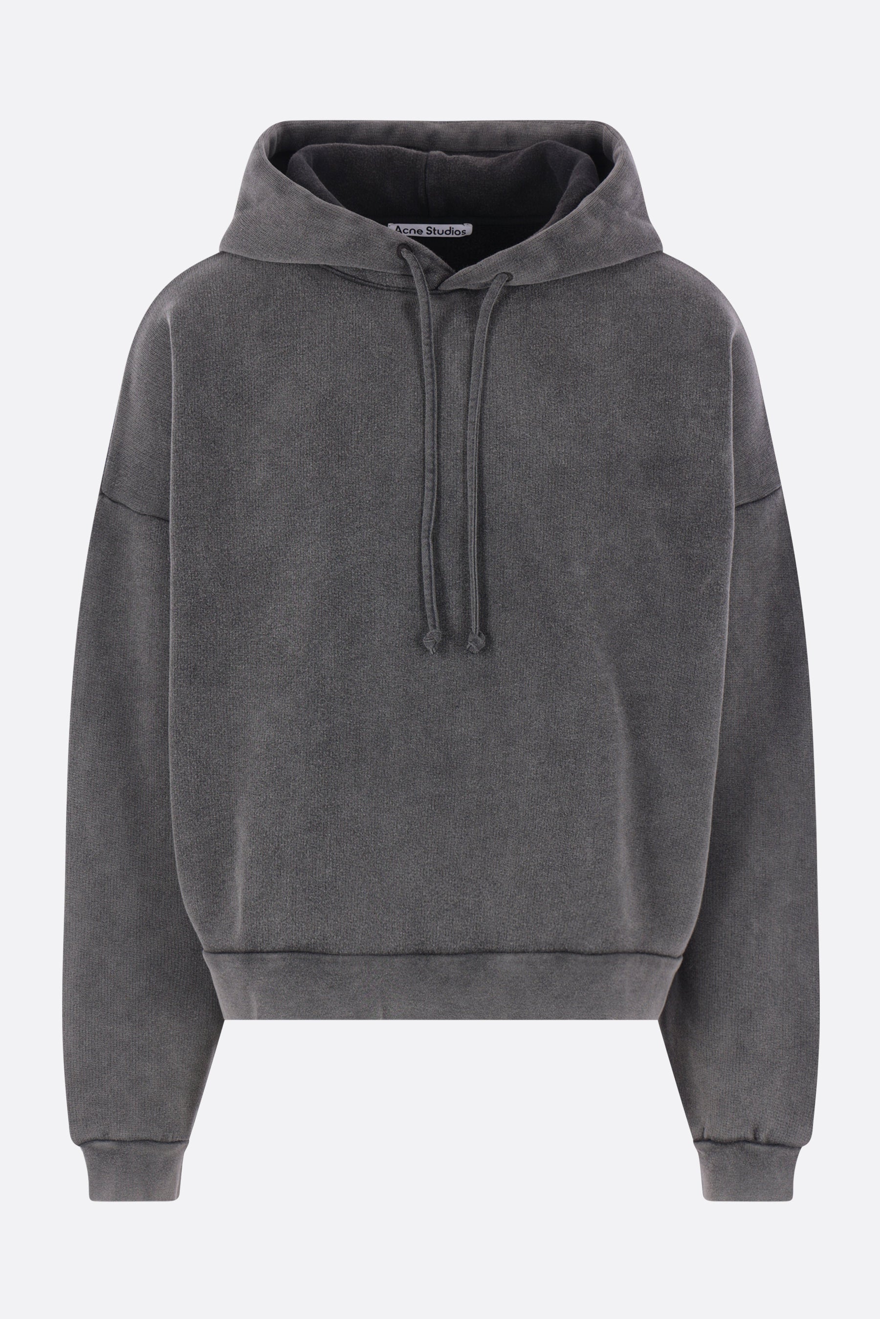 Acne Studios oversized hoodie crafted in faded black cotton fleece with transparent rubber logo patch on the back. Features long sleeves and ribbed edges.