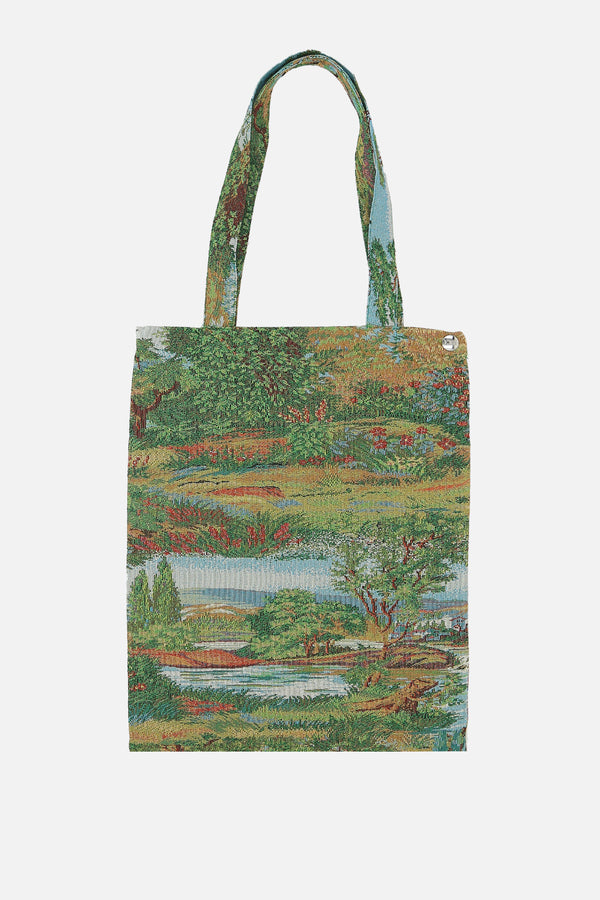 Bless tote bag crafted in jacquard with the New Garden pattern and double handles. The interior is unlined.