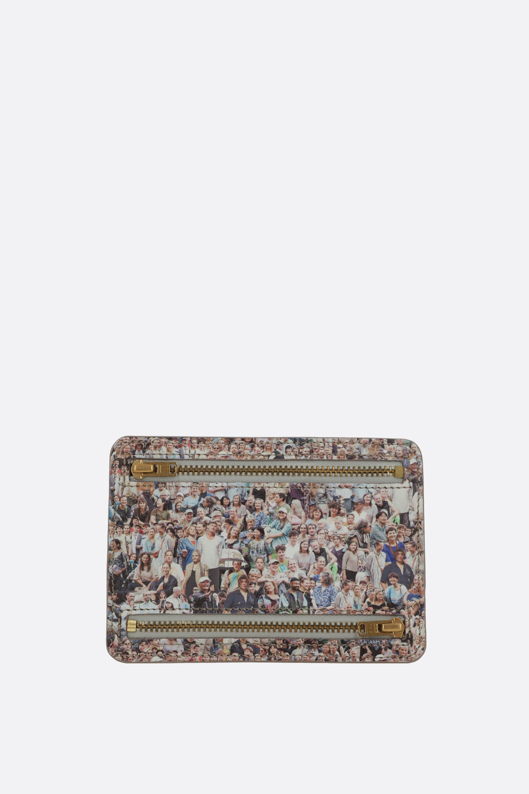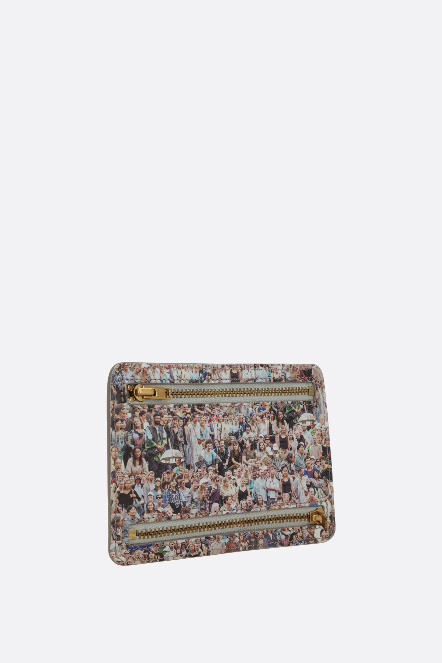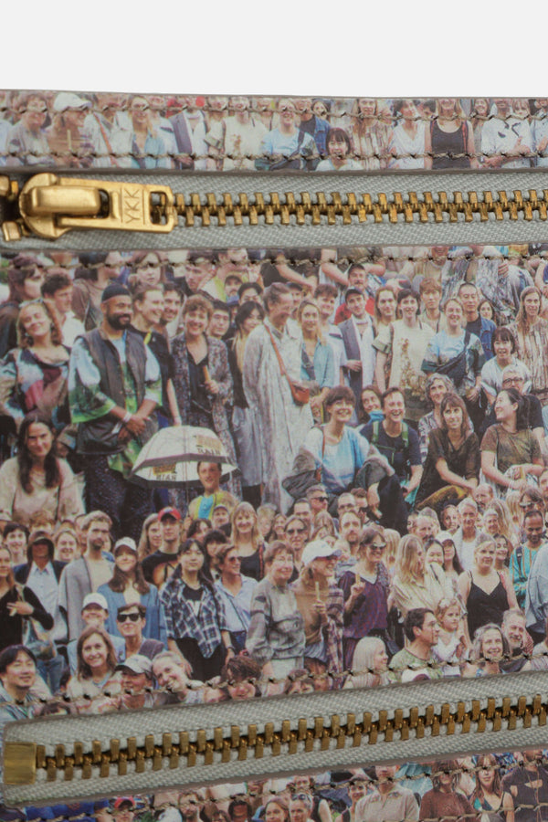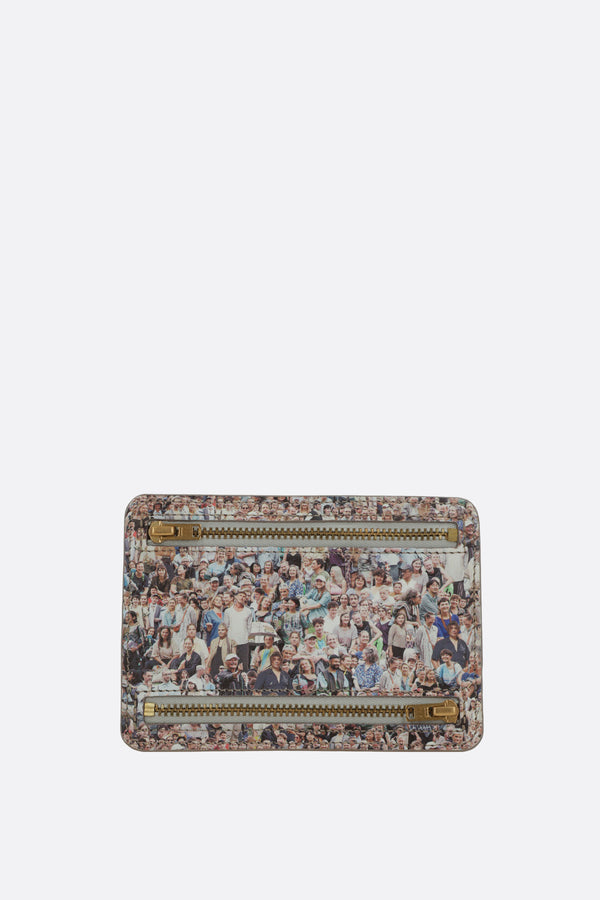 Bless coin purse crafted in smooth leather with an all-over Small Faces print. Featuring gold-tone hardware, four zippered pockets, and a fabric-lined interior.