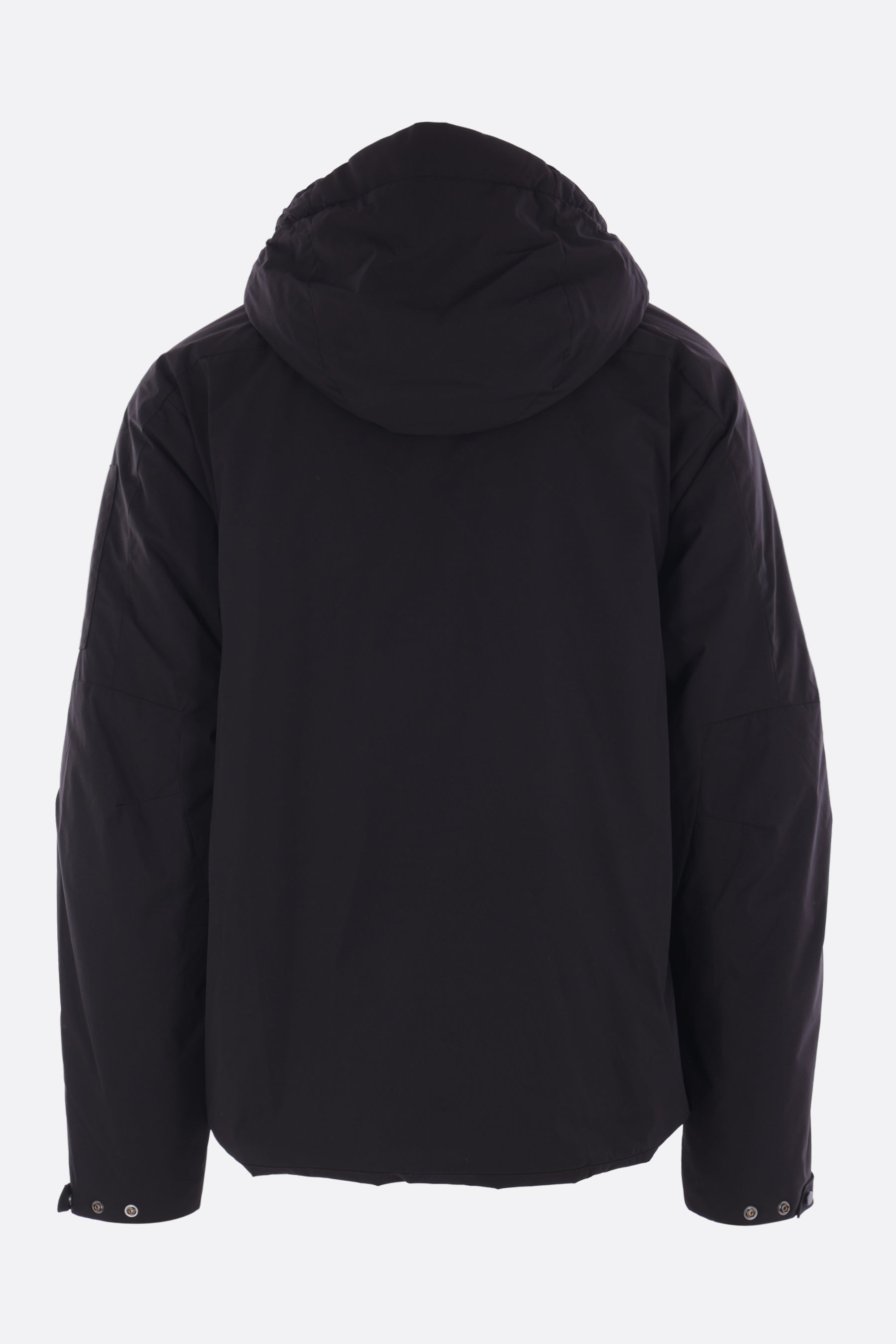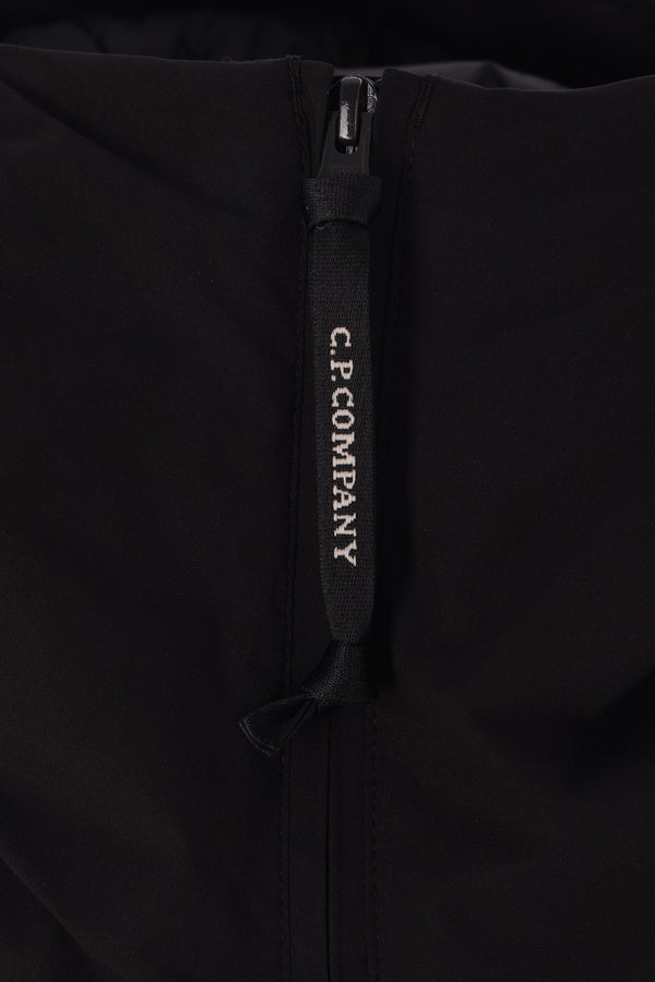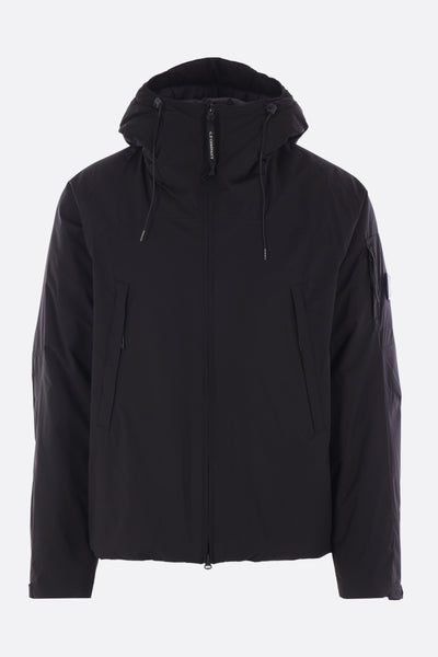 C.P. Company padded jacket made of Pro-Tek, a mechanical stretch polyester. Featuring a hood with drawstring, front closure with two-way zipper, zip pockets, long sleeves with adjustable cuffs, and a straight hem with drawstring. The design is completed by the pocket on the left sleeve adorned with the C.P. Company Lens detail.