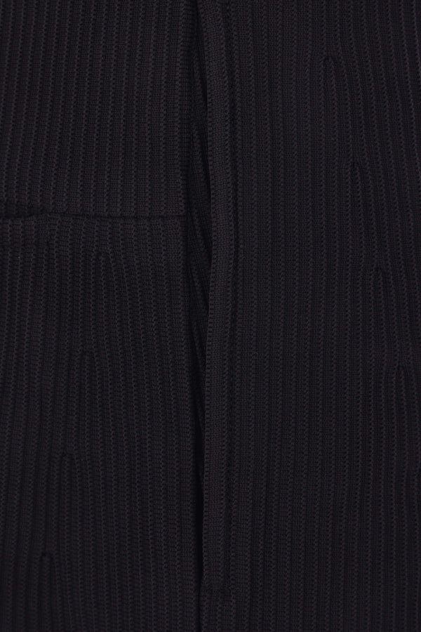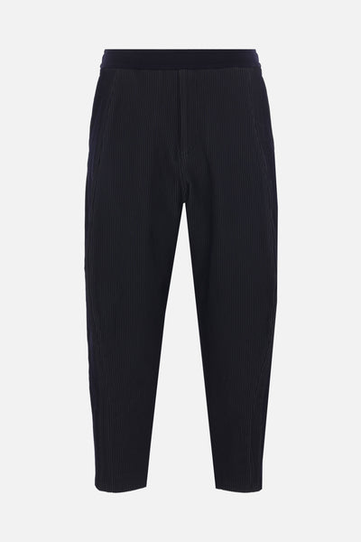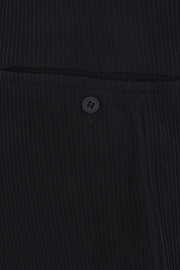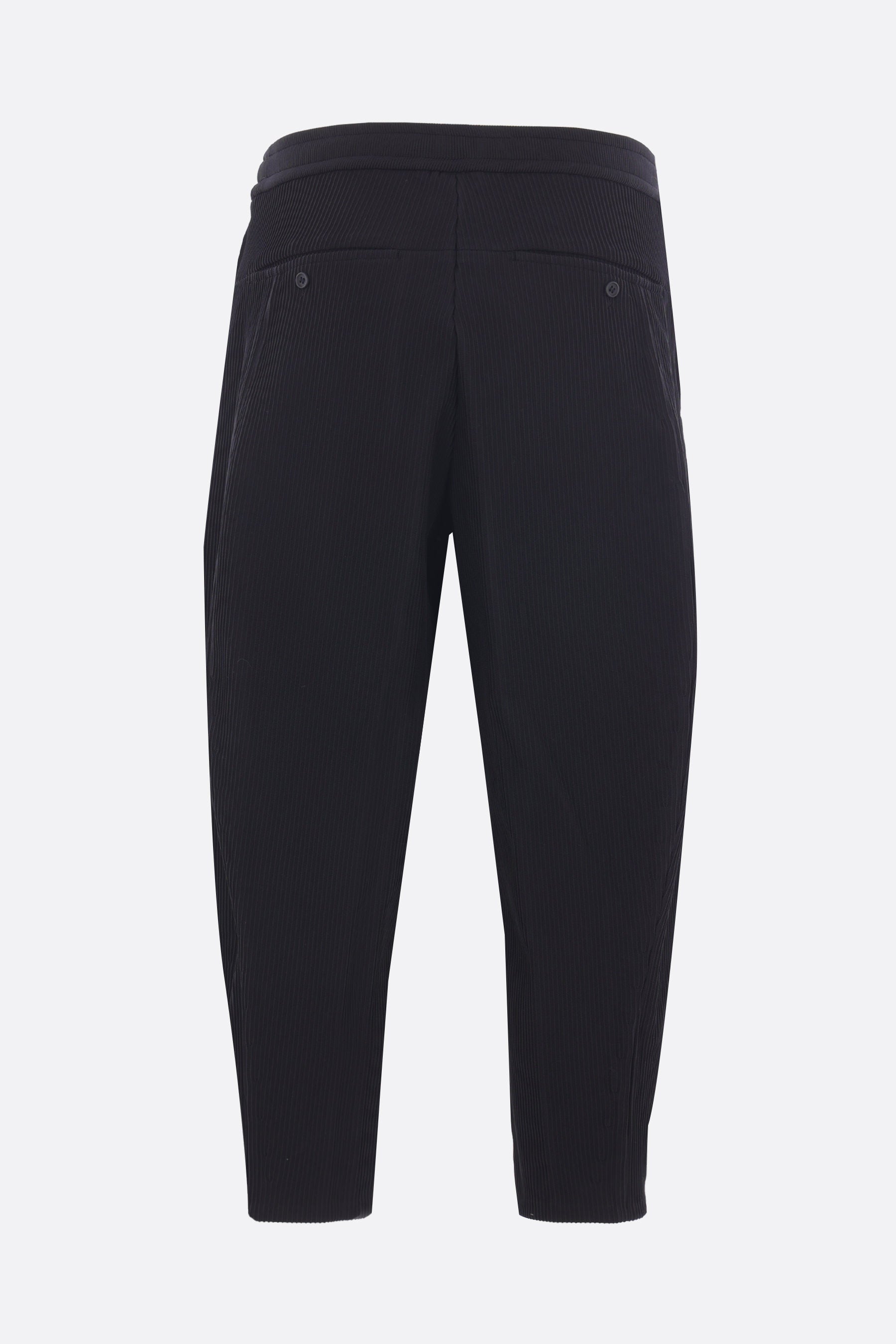 CFCL cropped trousers crafted from black textured pintuck knit. Featuring an elasticated waistband with drawstring, front zip, and multiple pockets.