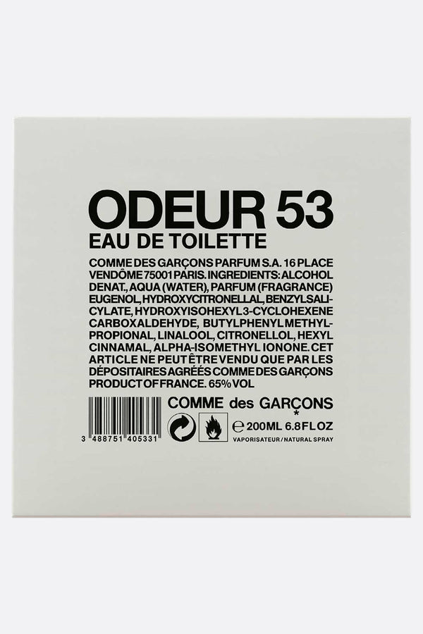 Comme des Garçons Parfums' Eau de toilette 200 ml characterized by the following olfactory notes: oxygen, flaming rock, freshly mowed grass, wash drying in the wind, sand dunes, pure air of the high mountains, flash of metal and nail polish.