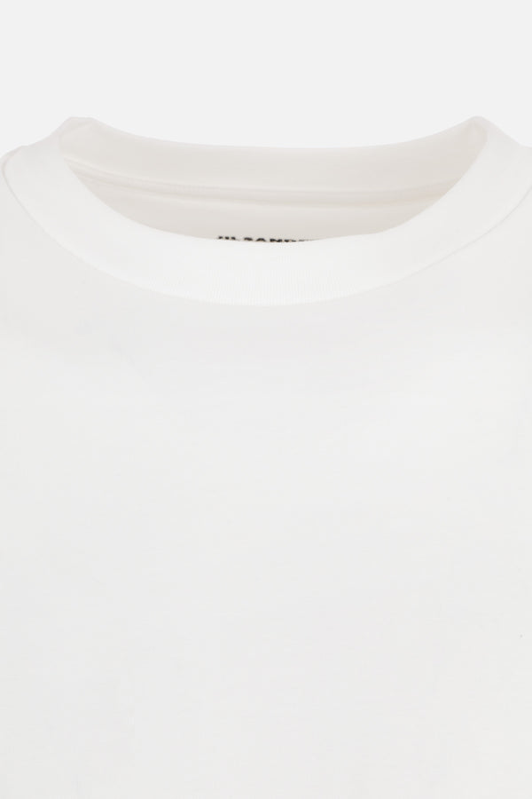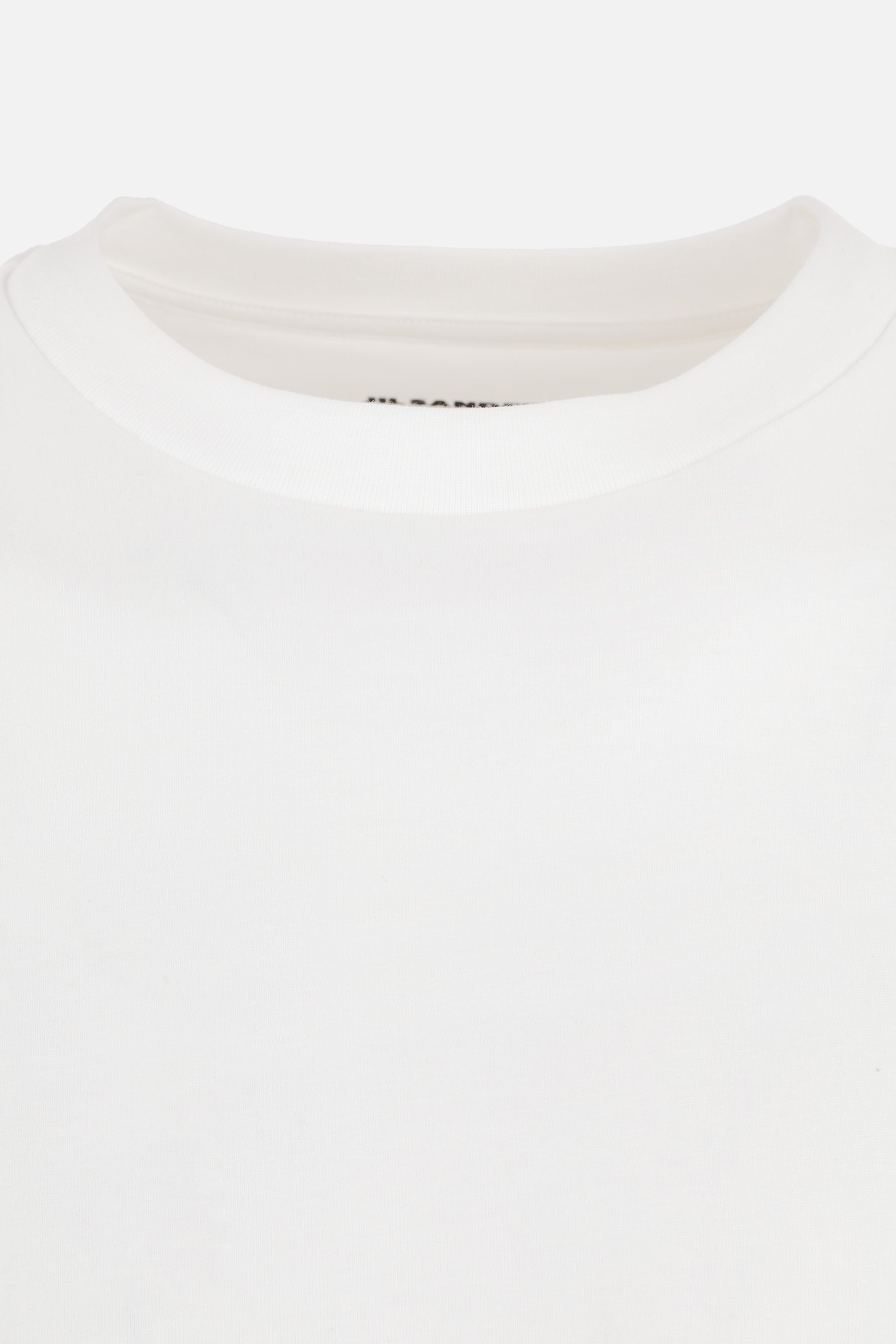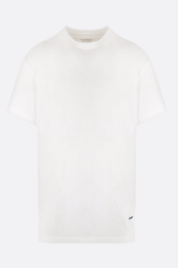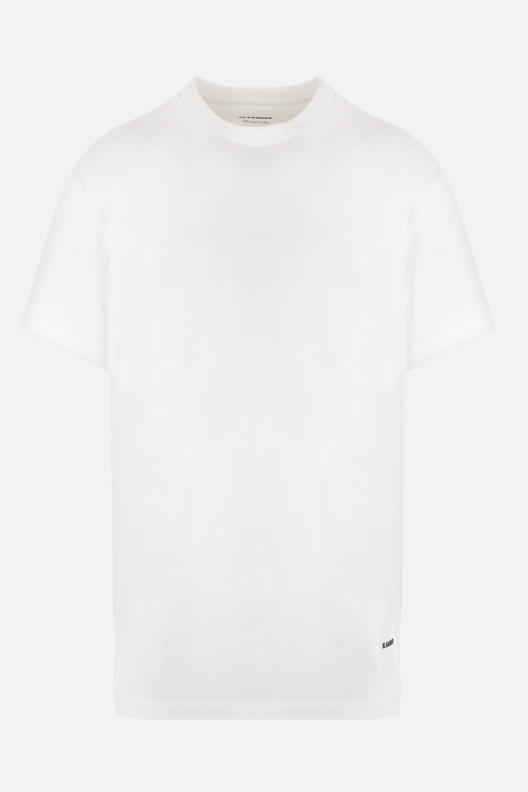 Pack of 3 t-shirts by Jil Sander, crafted from white organic cotton jersey. Featuring a crew neckline, short sleeves, and a straight hem. The design is completed with the signature logo label at the hem.