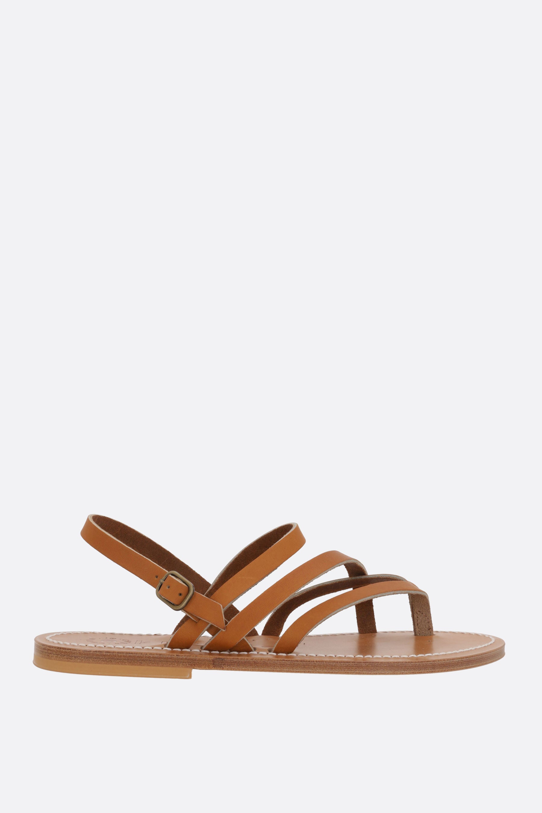 K.Jacques x 10 Corso Como thong sandals crafted in smooth tan leather. Featuring a round toe, adjustable ankle strap with a metal buckle, leather lining, and a leather sole.