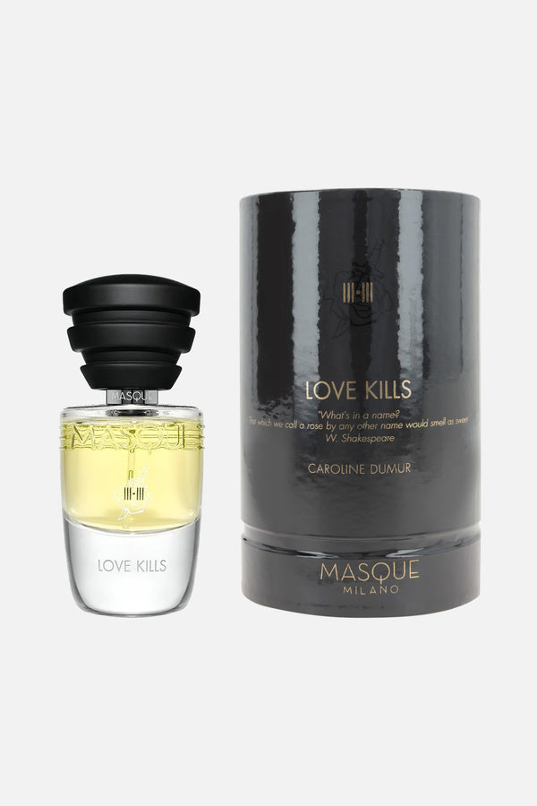Masque Milano's Eau de parfum 35 ml characterized by the following olfactory notes: rose oil Turkish, geranium oil Egypt “for life”, love skin accord (ambrette, rose oxide), rose Turkish, patchouli oil molecular distillation Indonesia and love scars accord (cedarwood oil, animalic musks, ambrarome).