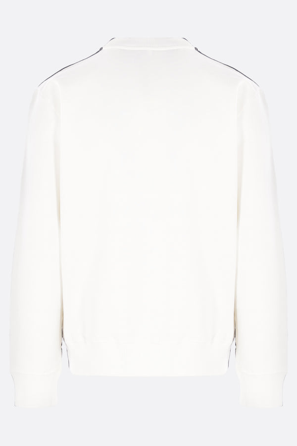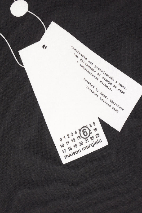 MM6 sweatshirt made of black and white cotton jersey with a trompe-l'œil effect screen-printed graphic. Featuring a crew neckline, long sleeves, and ribbed trims. The design is completed by the Maison's signature white stitching on the back.