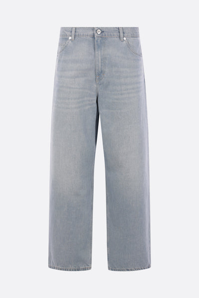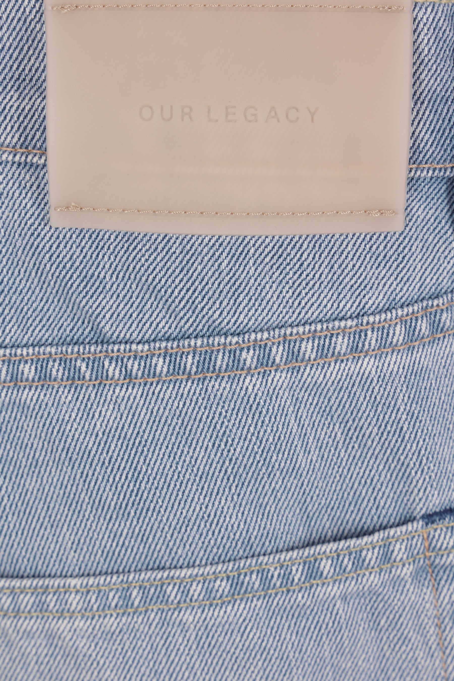 Our Legacy loose jeans made from light blue cotton denim. Featuring a front closure with a metal button and zip, belt loops, five classic pockets, and a logo patch on the back.