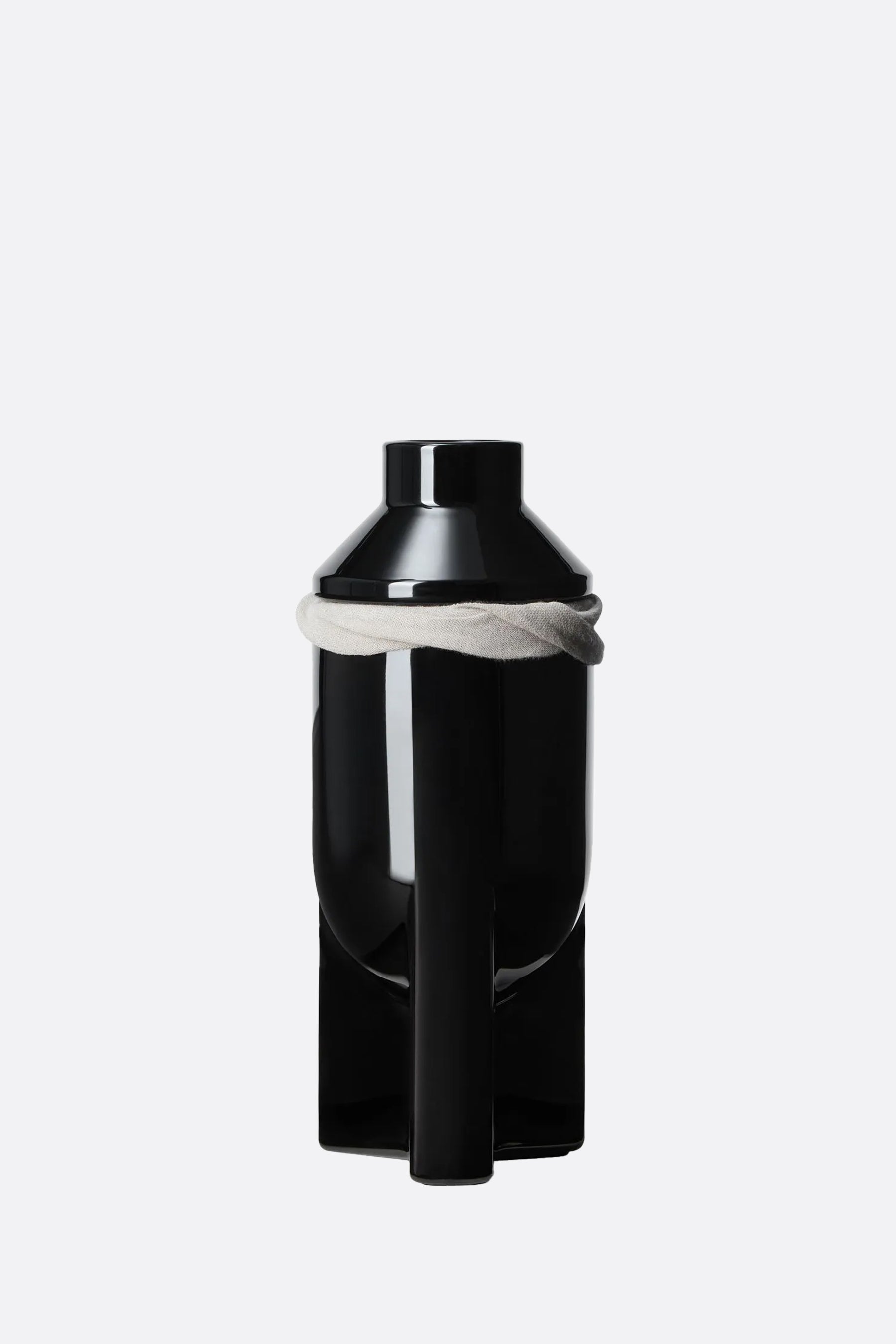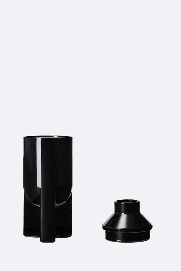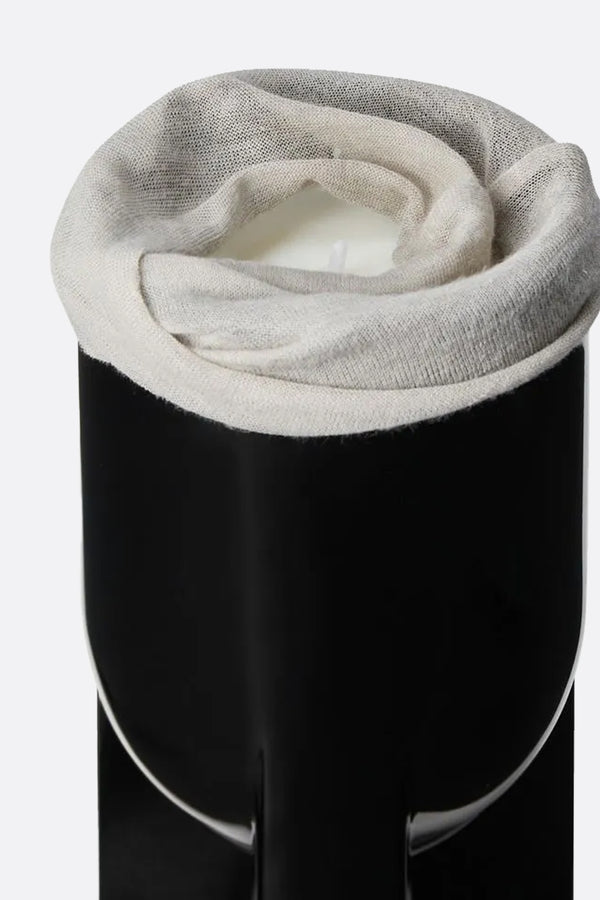 Rick Owens scented candle crafted from wax and enclosed in a black glass jar. The candle features notes of lotus, labdanum, myrtle, frankincense, and ambergris.