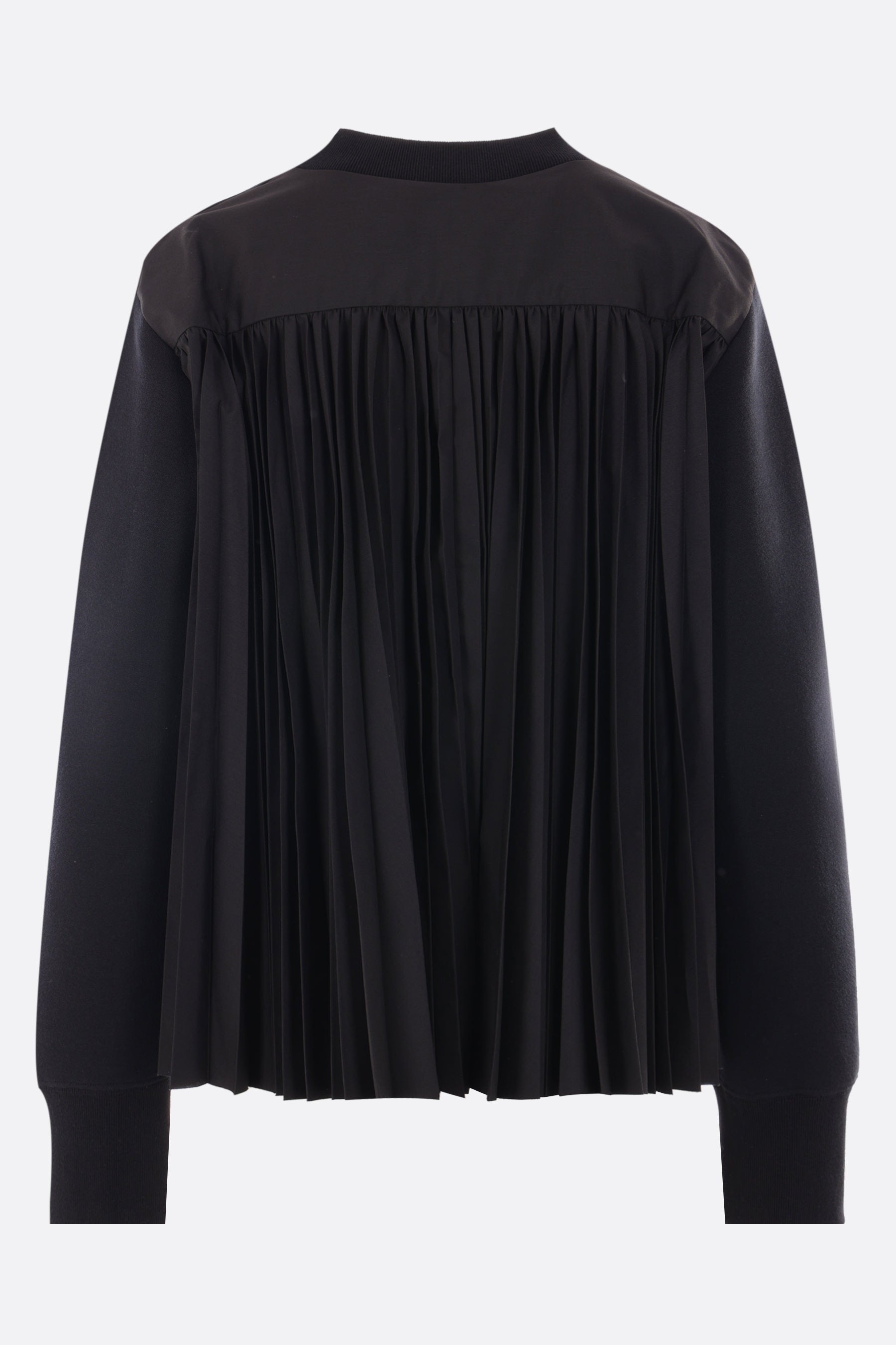 Sacai sweatshirt crafted in black cotton blend jersey with tone-on-tone pleated cotton panel at back. It features crew neck, long sleeves and ribbed edges.