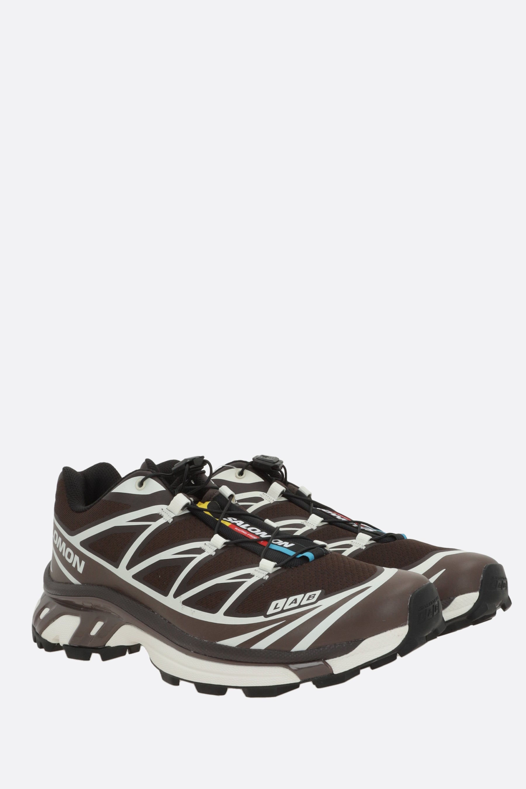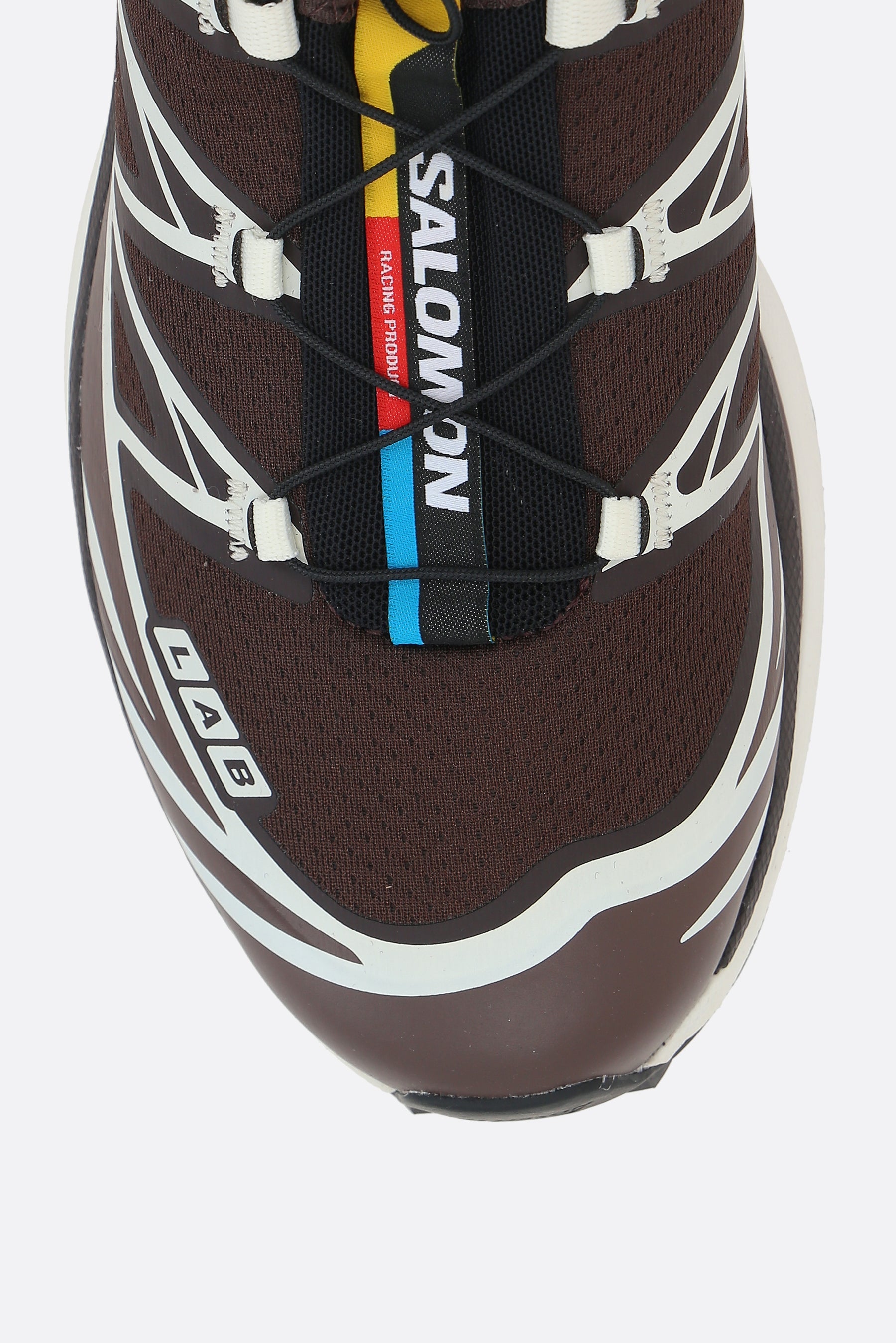 Salomon S/Lab low-top sneakers crafted from brown mesh with contrasting heat-sealed details. Features lace-up closure, rounded toe, fabric lining, and textured rubber sole with Ortholite® technology. The design is completed with a logo label on the tongue and a printed logo on the side.