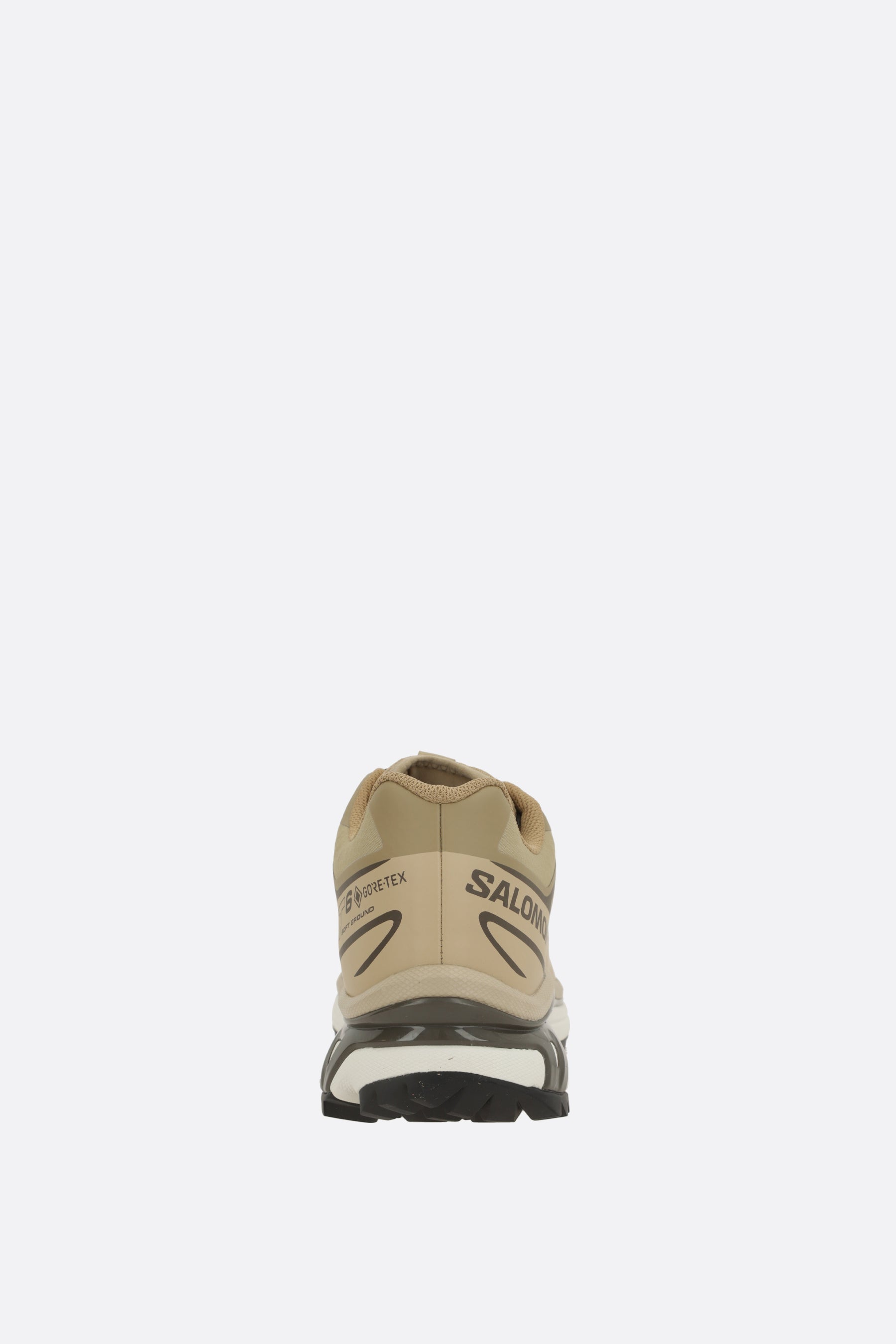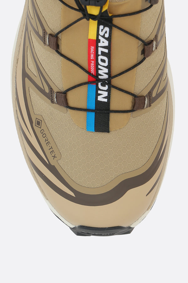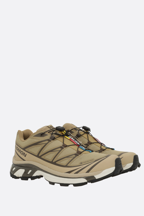 Salomon S/Lab low-top sneakers crafted from beige GORE-TEX with contrasting heat-sealed details. Features a toggle lace-up closure, round toe, fabric lining, and a textured Contagrip® rubber sole. The design is completed with a logo label on the tongue and a printed logo on the side.