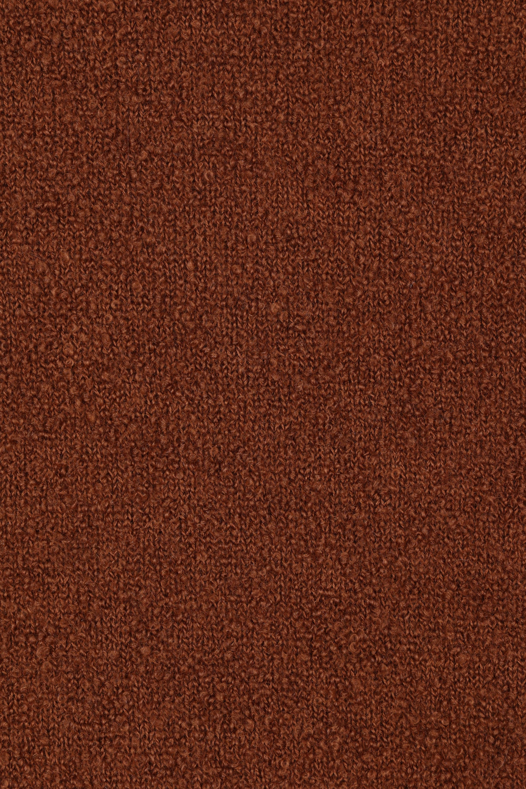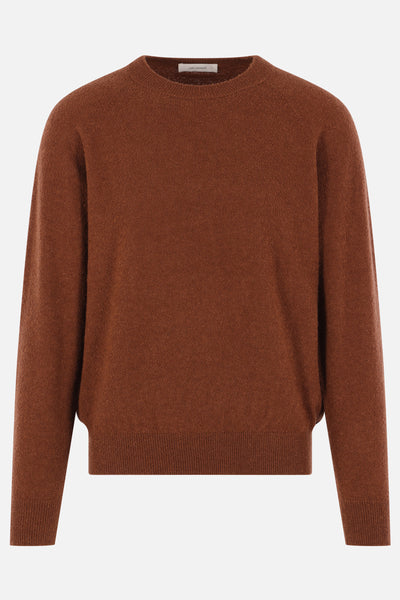 Umit Benan sweater made of brown silk and cashmere knit. Features a crew neckline, long raglan sleeves, and ribbed edges.