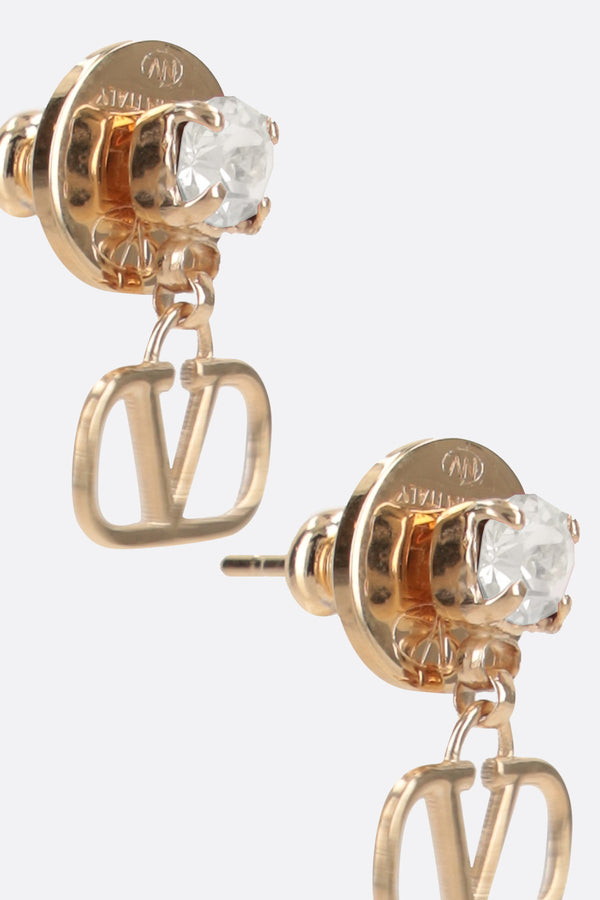 Valentino Garavani drop earrings crafted from gold-finish metal, adorned with clear Swarovski® crystals. Featuring butterfly backings for pierced ears.