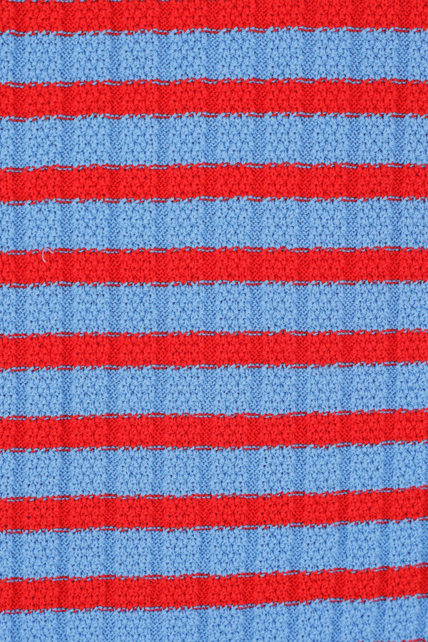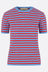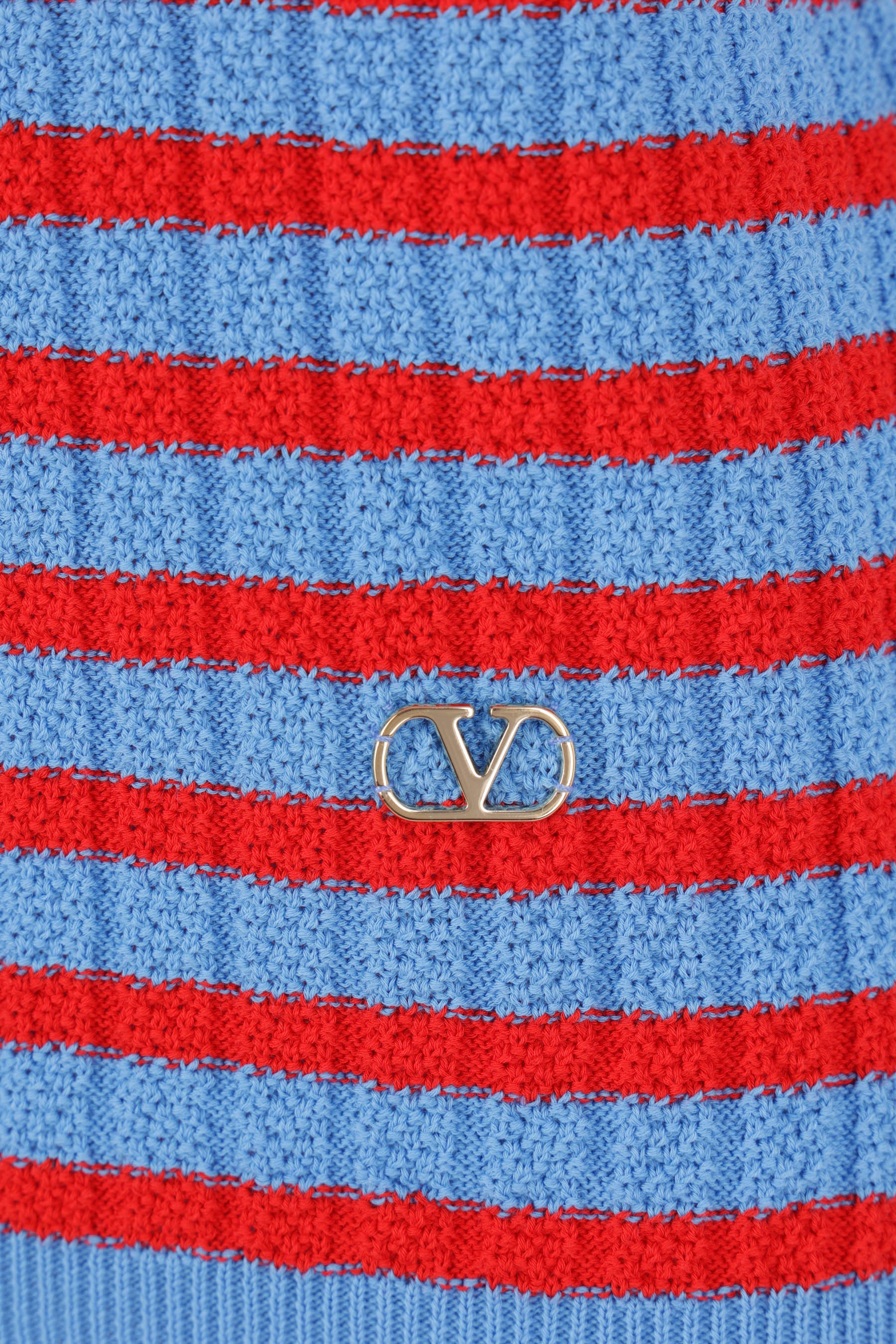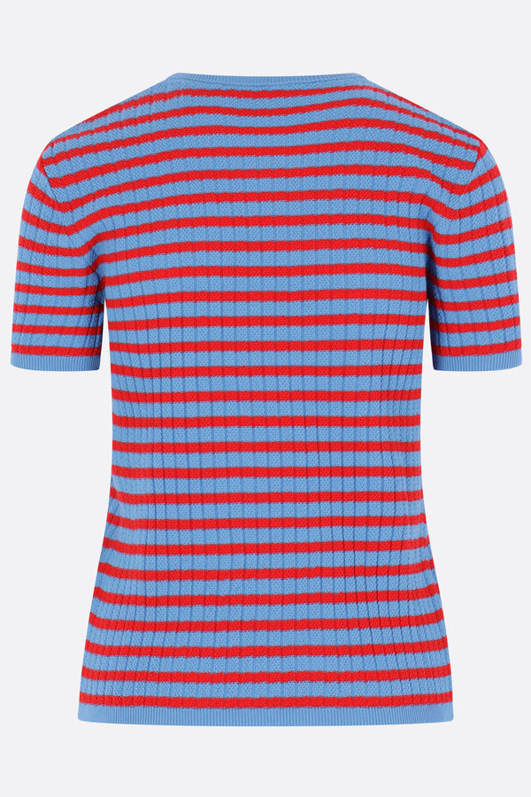 Valentino Garavani sweater crafted in ribbed cotton knit with bright blue and red stripes. Featuring a crew neckline, short sleeves, and a straight hem with a metal VLogo Signature detail.