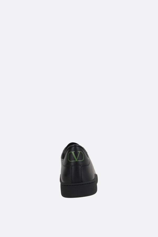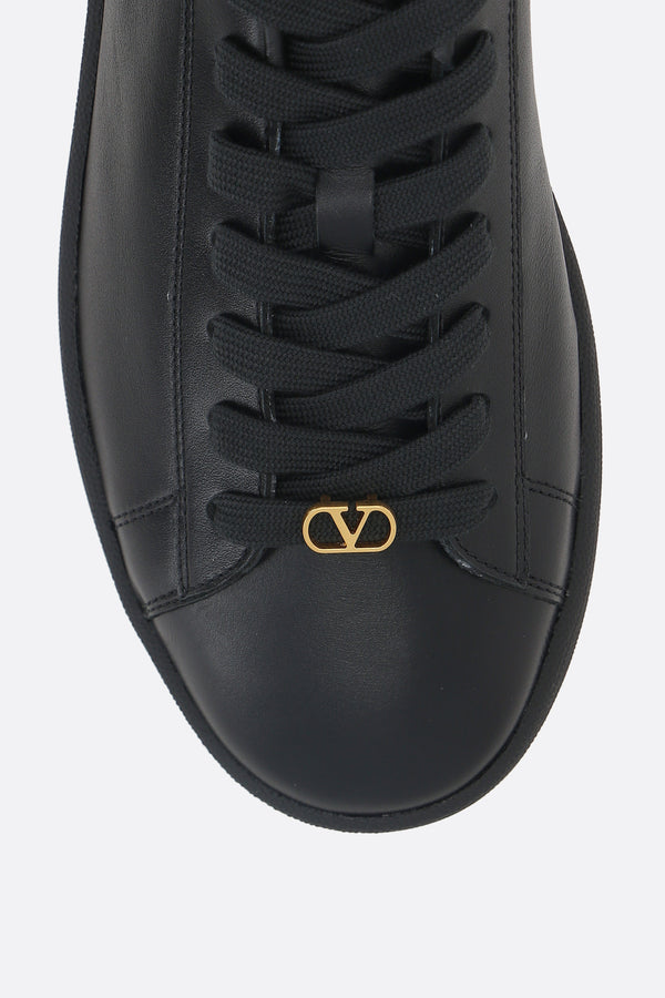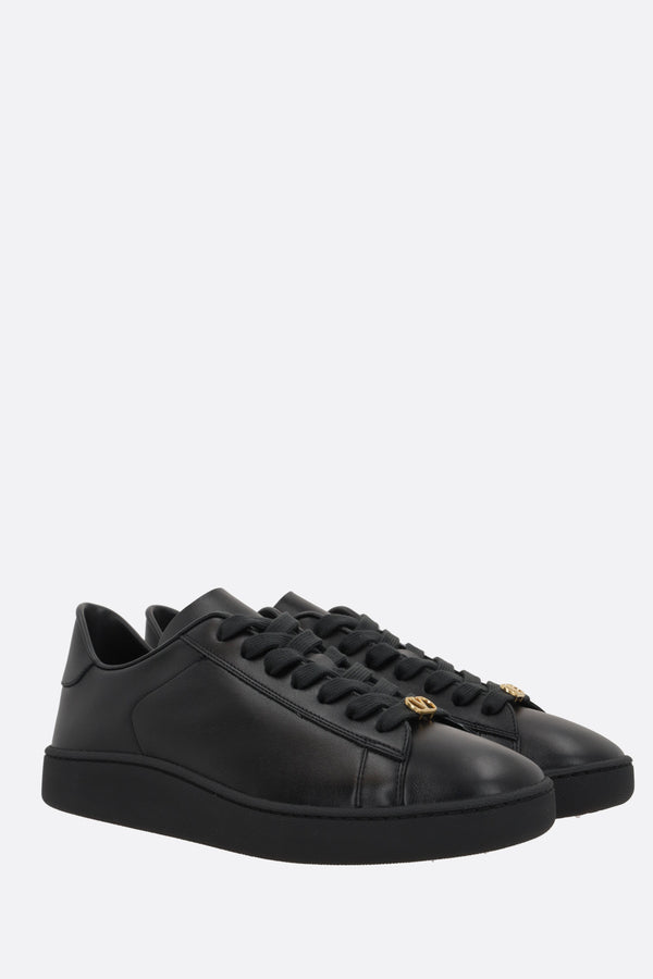 Valentino Garavani low-top sneakers crafted from black smooth leather. Featuring lace-up closure, rounded toe, leather lining, and rubber sole. The design is completed with a metal VLogo Signature detail and a screen-printed logo on the heel.
