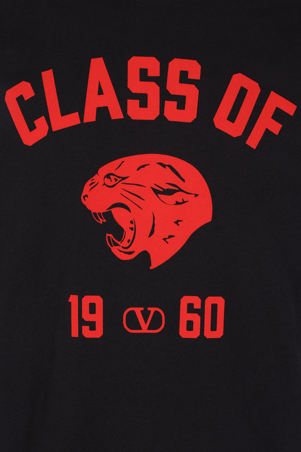 Valentino Garavani t-shirt crafted from black cotton jersey, featuring a Panther print on the chest. Designed with a crew neckline, short sleeves, and a straight hem.