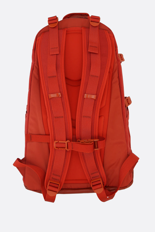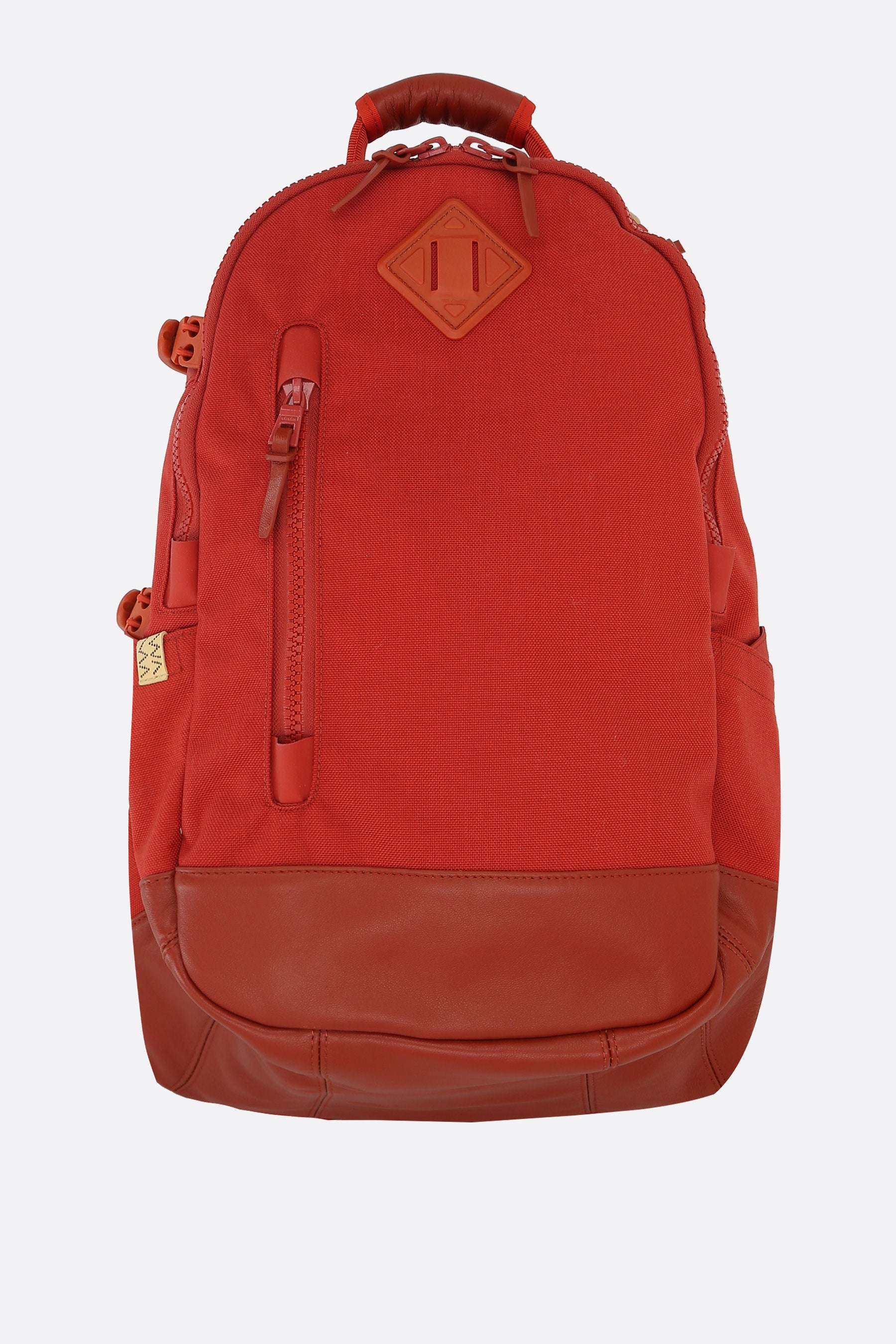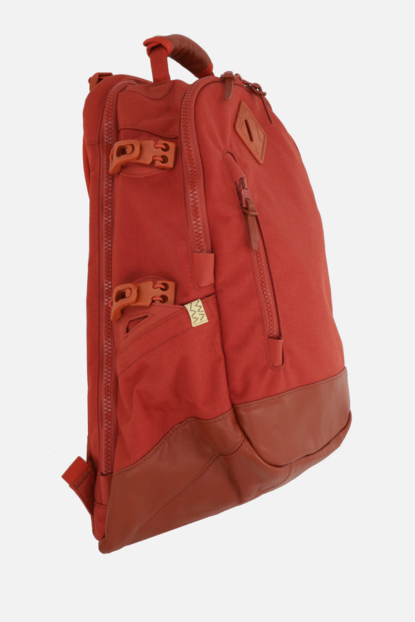 Visvim backpack crafted from rust-colored Cordura® nylon with a tonal leather base. Featuring tone-on-tone hardware, double-zip closure, top handle, and adjustable shoulder straps. The orange nylon-lined interior includes multiple pockets. The design is completed with numerous exterior pockets and a logo patch.