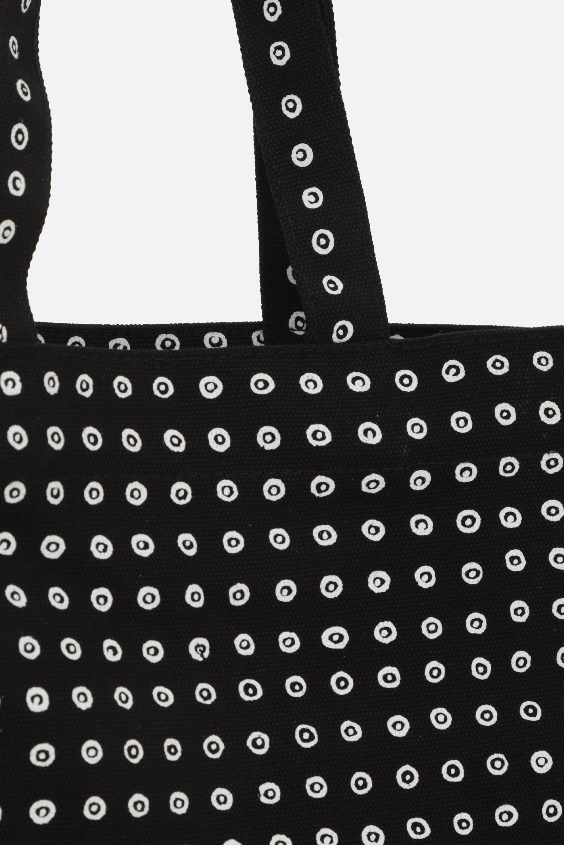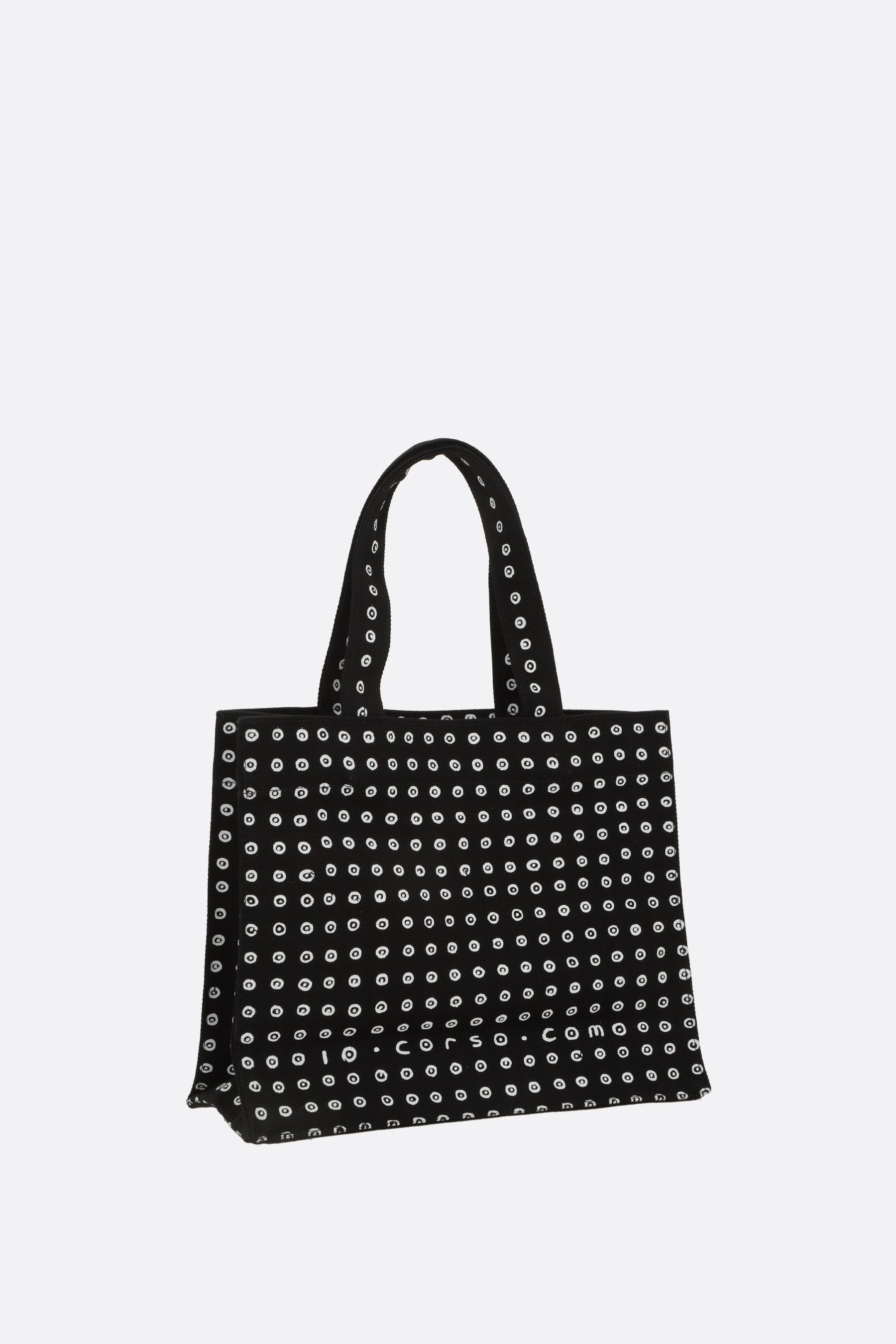 Borsa shopping di 10 Corso Como realizzata in canvas di cotone color nero con stampa cerchi signature a contrasto. Caratterizzata da doppio manico e interno sfoderato color nero.