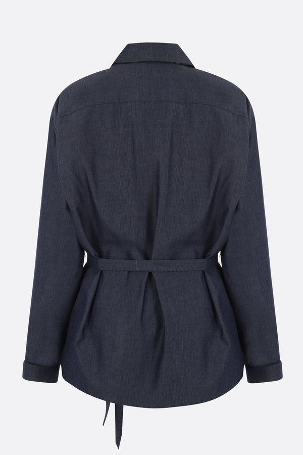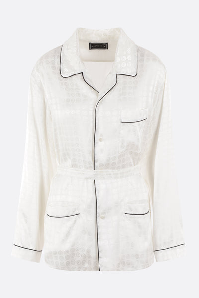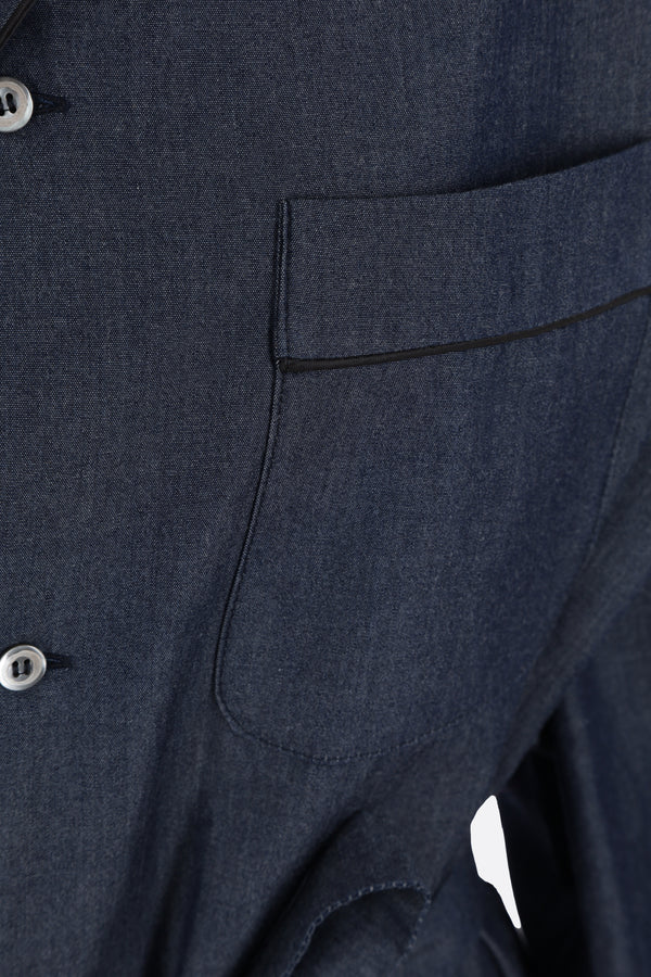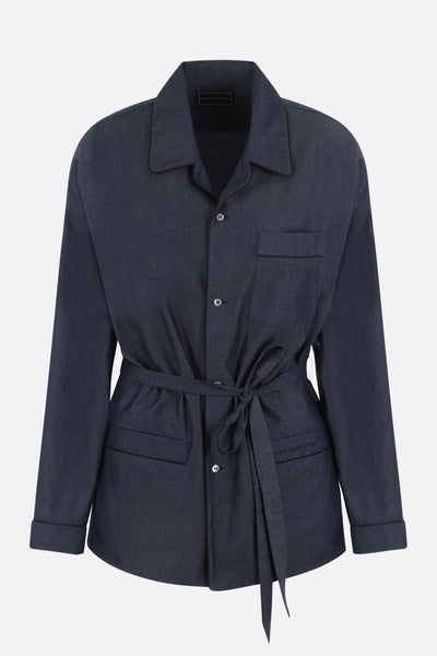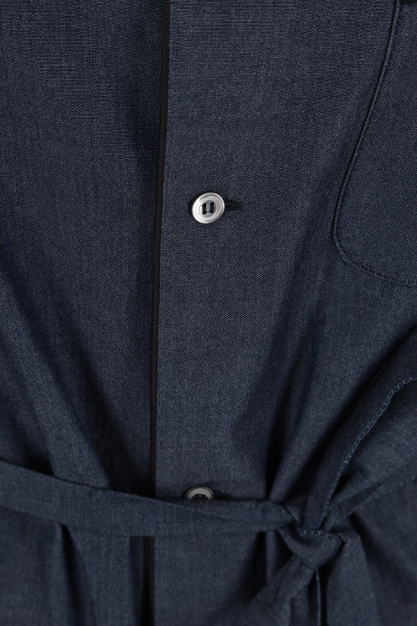 Camicia pijama di 10 Corso Como realizzata in chambray di cotone color blu con ricamo logo frontale. Caratterizzata da colletto con rever, chiusura con bottoni, maniche lunghe, tasche frontali e fondo dritto. Completa il design la cintura removibile.