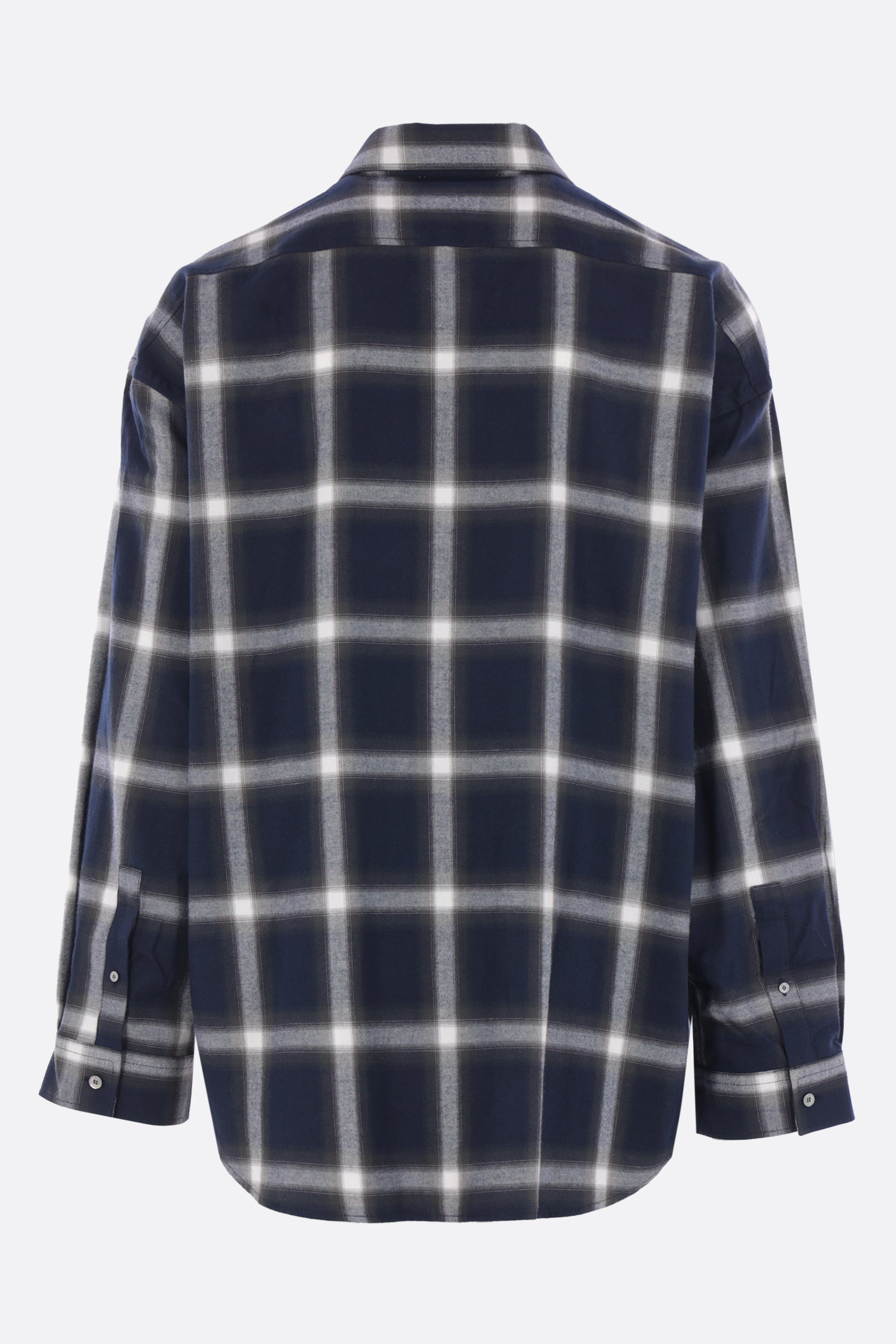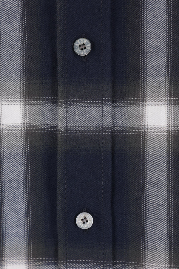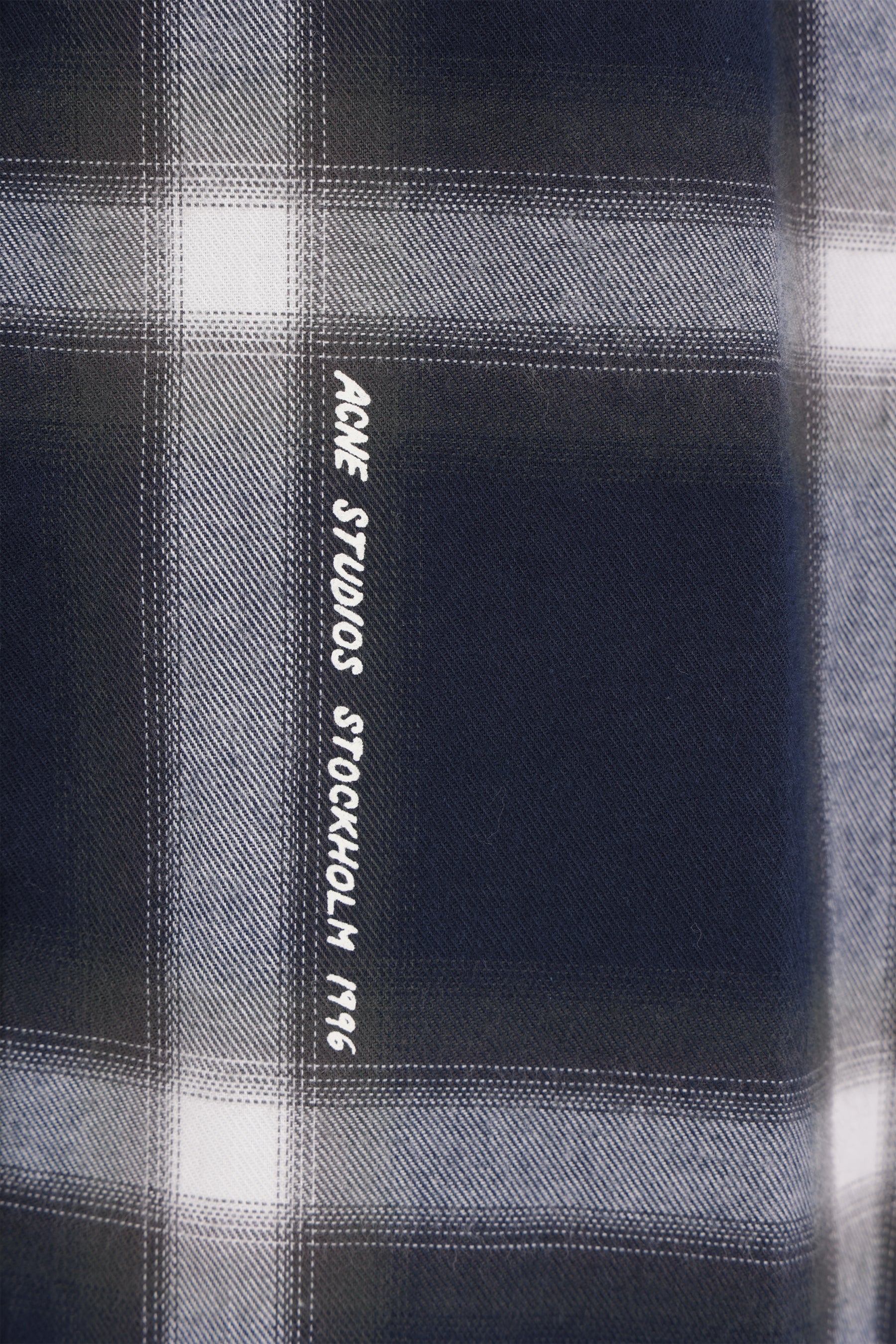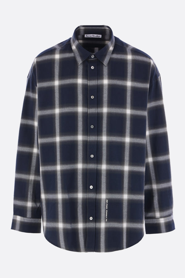 Camicia di Acne Studios realizzata in flanella di cotone color blu con motivo a quadri. Caratterizzata da colletto classico, chiusura frontale con bottoni, maniche lunghe con polsini abbottonati e fondo arrotondato con stampa logo frontale.