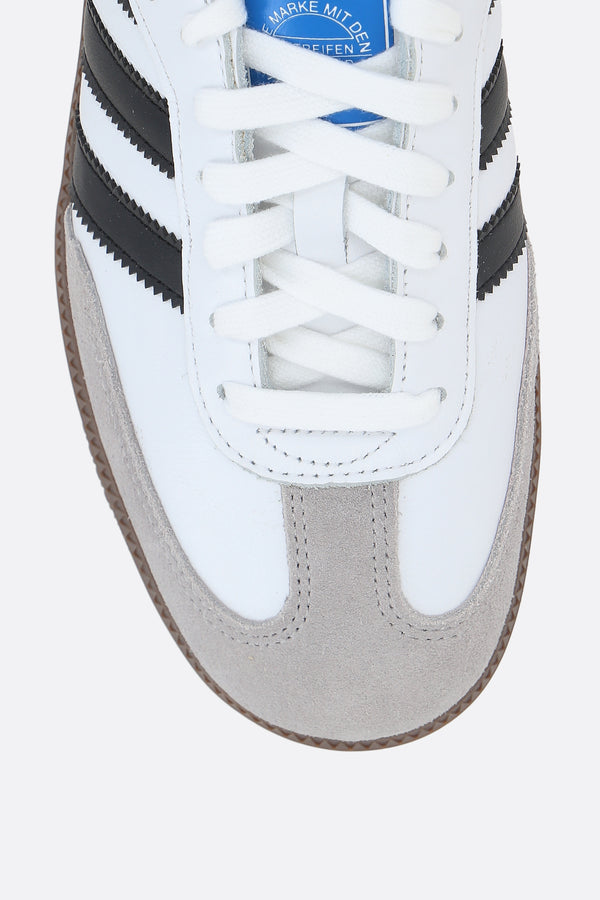 Sneaker low-top di adidas realizzata in pelle liscia color bianco con inserto a contrasto in suede grigio sulla punta. Caratterizzata da chiusura con lacci, punta tonda, fodere in tessuto e suola in gomma. Completano il design l'iconico dettaglio 3-Stripes lungo i lati, la tallonetta a contrasto color nero e l'inconfondibile logo stampato sulla linguetta.