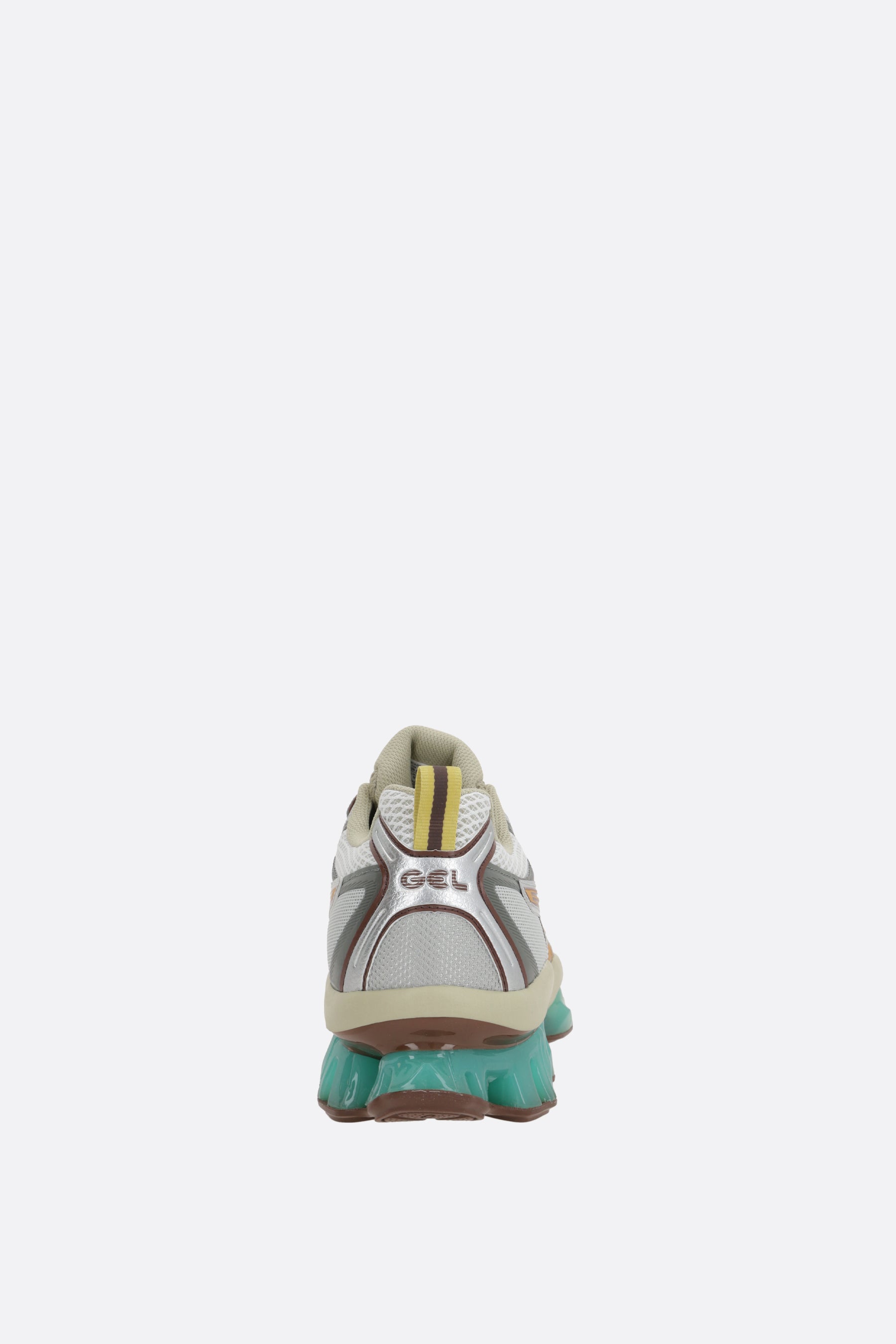 Sneaker low-top di Asics realizzata in rete color bianco ed ecopelle color kaki ed argento. Caratterizzata da chiusura con lacci, punta tonda, fodere in tessuto e suola texturizzata in gomma con tecnologia Ortholite®. Completa il design l'iconica patch logo applicata sulla linguetta.