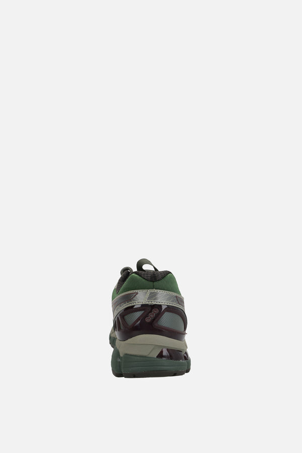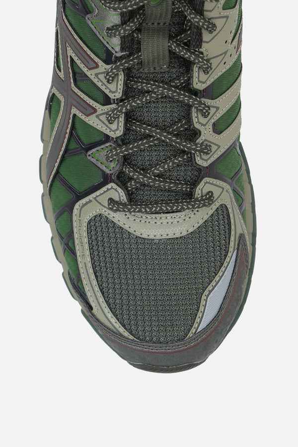 Sneaker low-top di Asics realizzata in mesh color verde scuro con inserti in ecopelle. Caratterizzata da chiusura con lacci, punta tonda, fodere in tessuto, inserti con tecnologia GEL nell'intersuola per un'ammortizzazione avanzata e suola texturizzata in gomma. Completa il design l'iconica patch logo applicata sulla linguetta.