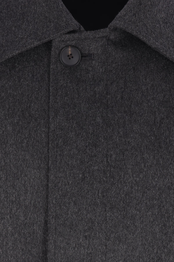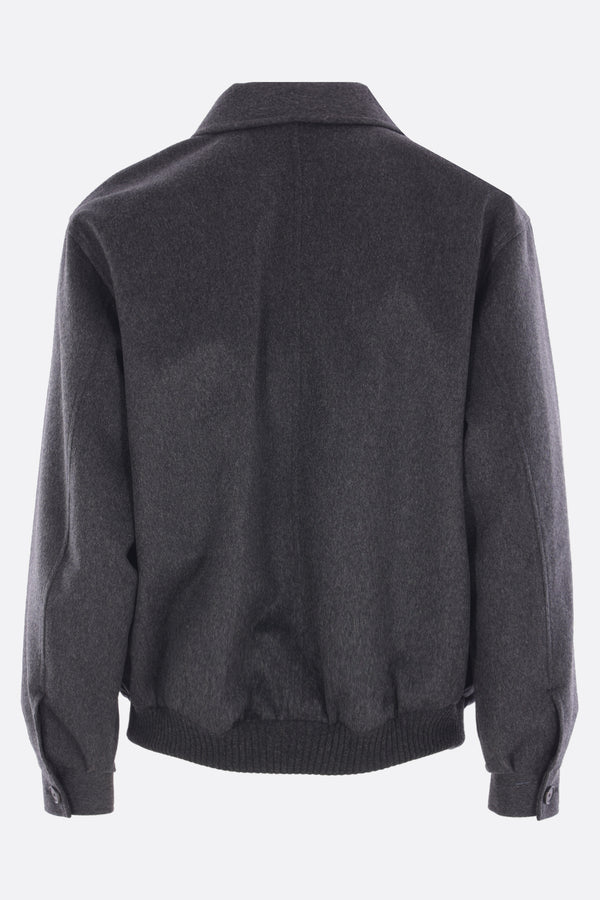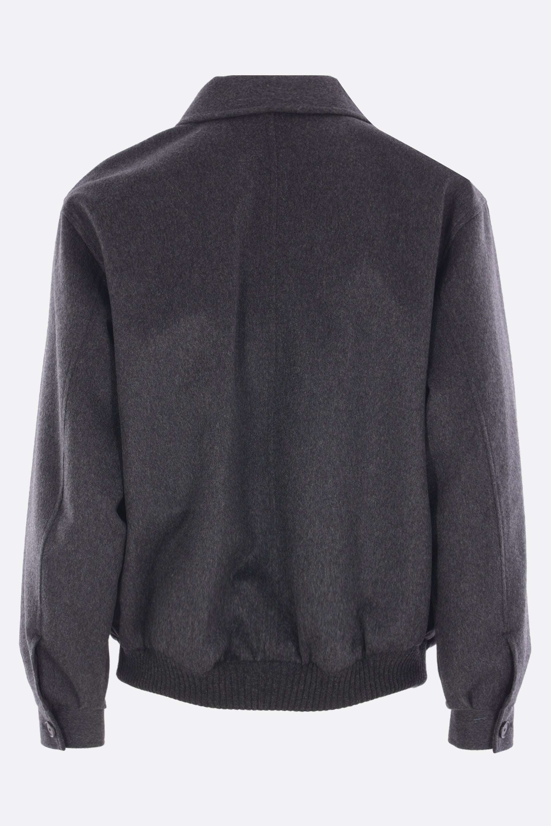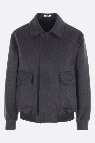 Giubbotto di Auralee realizzato in cashmere color grigio scuro. Caratterizzato da colletto a punta, chiusura frontale con zip / bottoni, tasche con patta, maniche lunghe e bordi in maglia a costine. Interno foderato.