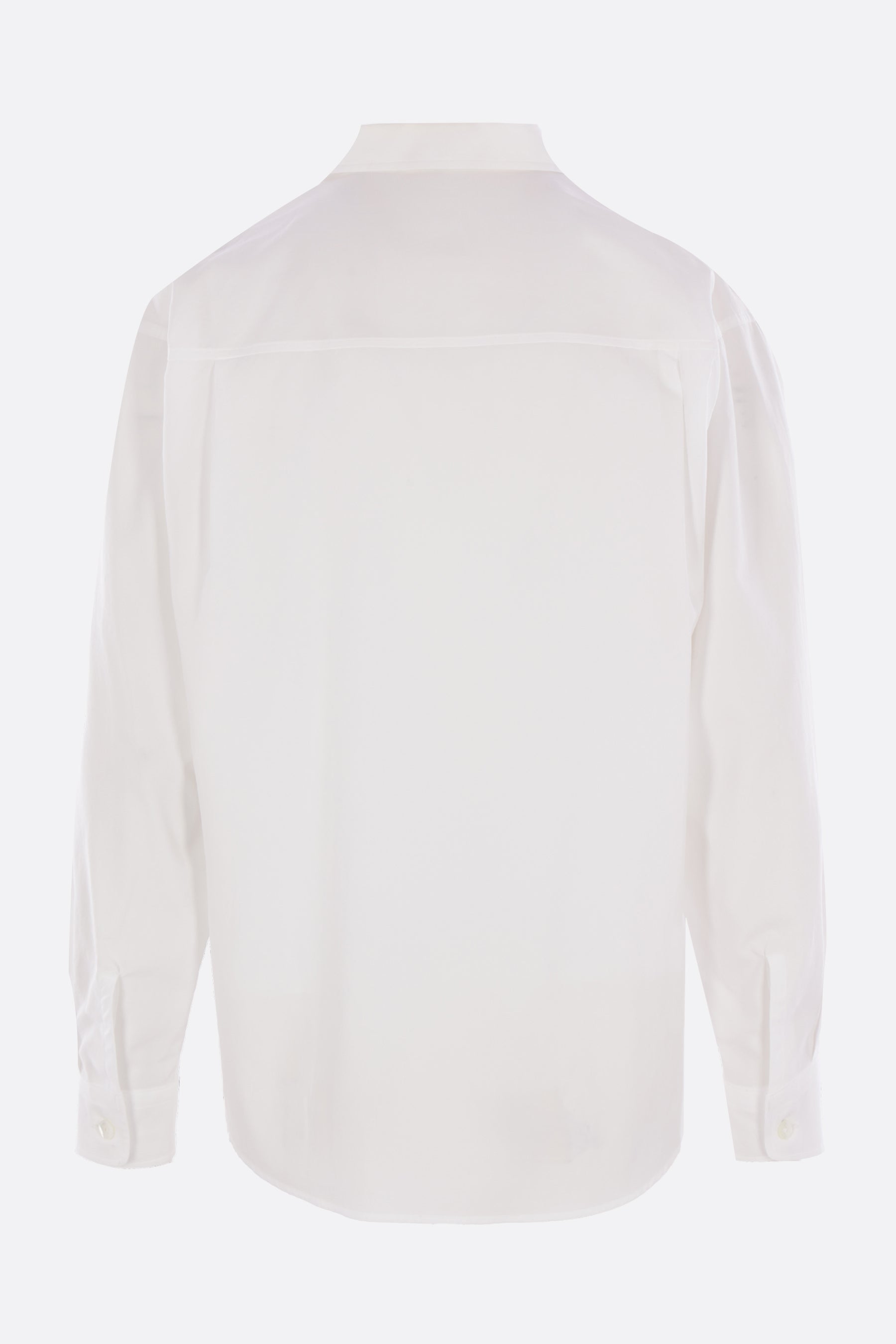 Camicia oversize di Auralee realizzata in twill di cotone color bianco. Caratterizzata da colletto classico, chiusura frontale con bottoni, tasca applicata sul petto, maniche lunghe con polsini abbottonati e fondo arrotondato.