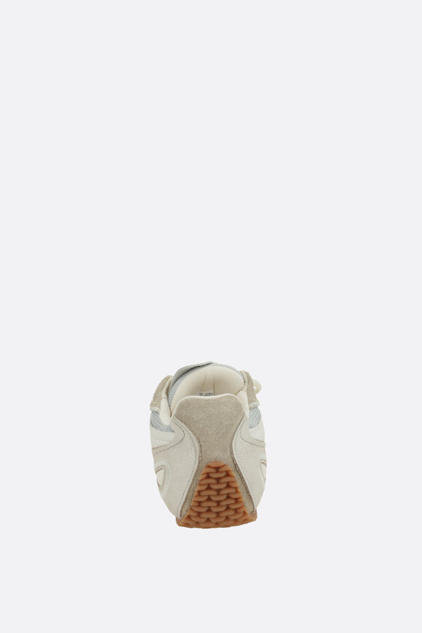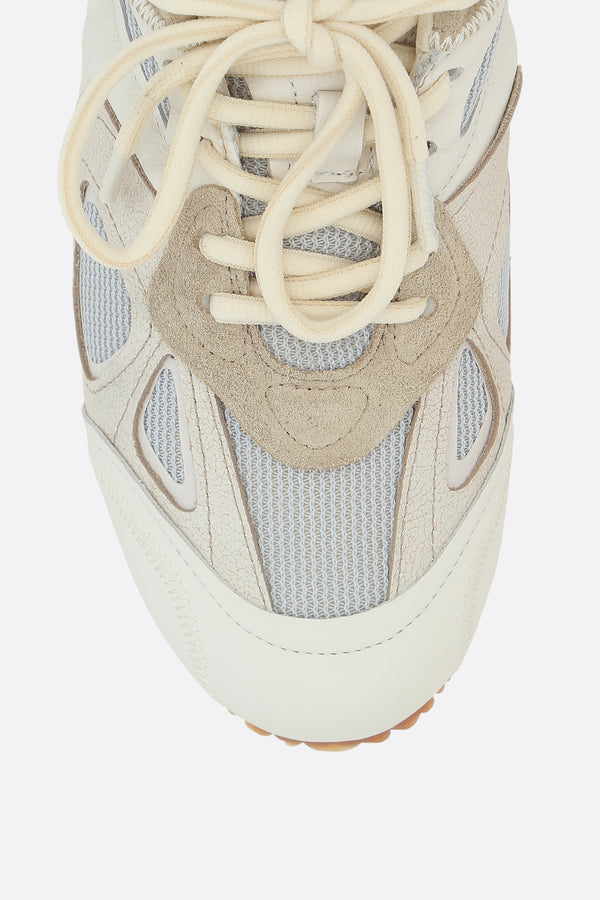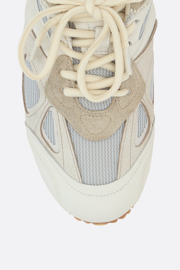 Sneaker low-top di Axel Arigato realizzata in pelle liscia, nabuck e suede nei toni dell'avorio con inserti in mesh color grigio chiaro. Caratterizzata da chiusura con lacci, punta tonda, fodere in tessuto e suola in gomma. Completa il design il logo lettering impresso sulla linguetta.