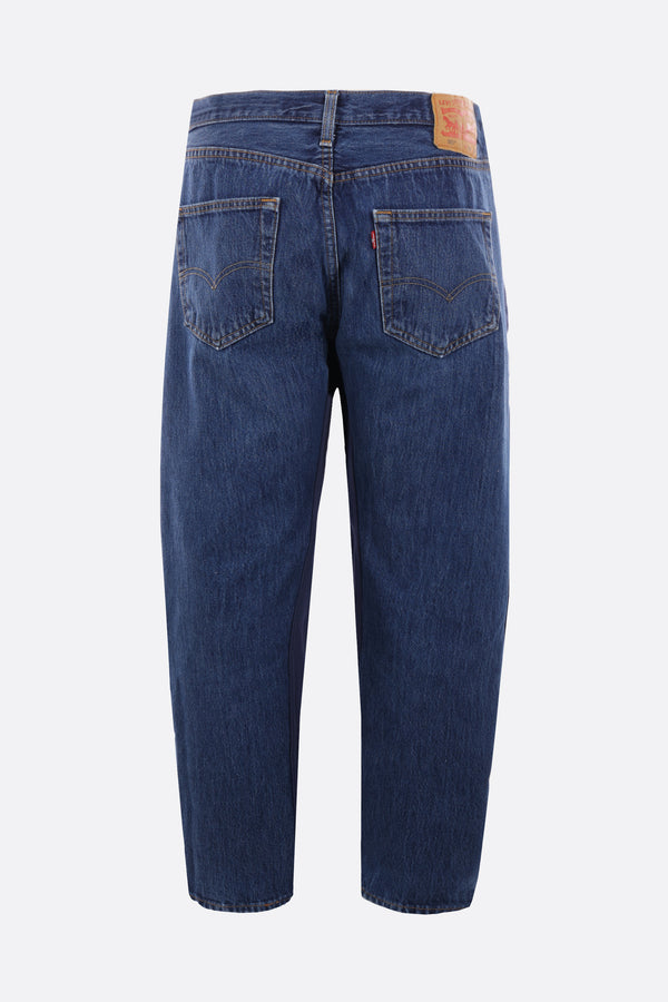 Pantalone jogging dalla linea oversize di Bless disegnato in collaborazione con Nike / Levi Strauss & Co e realizzato in jersey color blu sul davanti e denim color blu sul retro. Caratterizzato da fascia elasticizzata in vita con coulisse, passanti per cintura, tasche multiple e fondo elasticizzato. Completano il design il ricamo Nike a contrasto sul davanti e la patch Levi Strauss & Co sul retro. Ogni prodotto è un pezzo unico; lavaggio e colorazione possono variare.