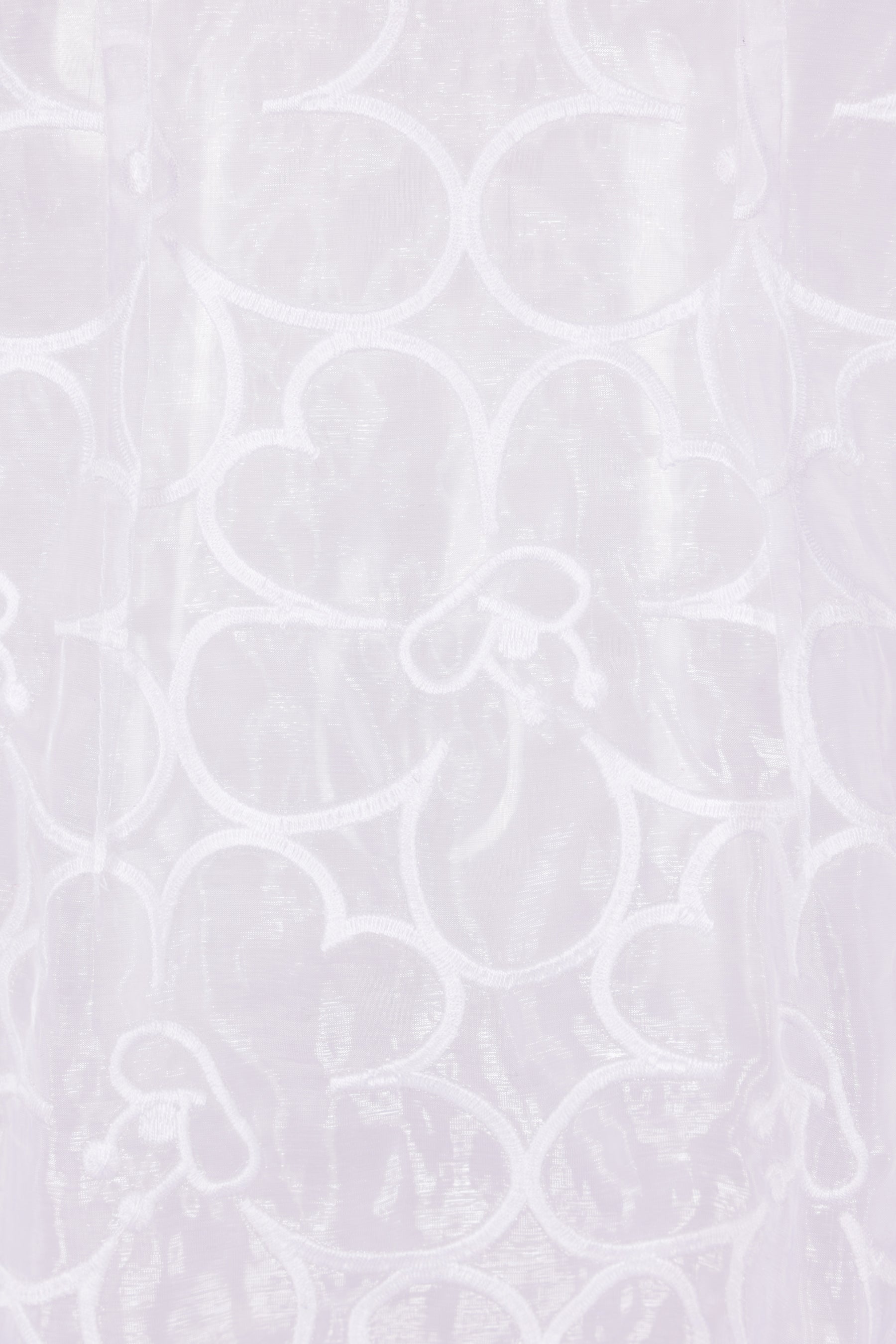 Abito smanicato di Cecilie Bahnsen realizzato in organza color bianco con ricamo floreale Felicia all-over. Caratterizzato da scollatura a giro, chiusura posteriore con zip invisibile, arricciature sui fianchi, gonna a ruota e fondo smerlato. Interno sfoderato.