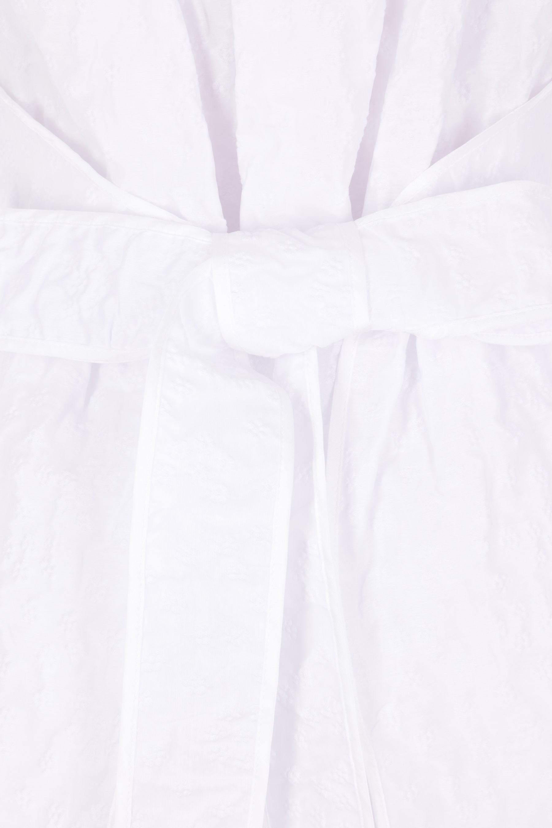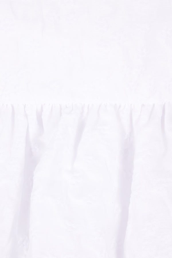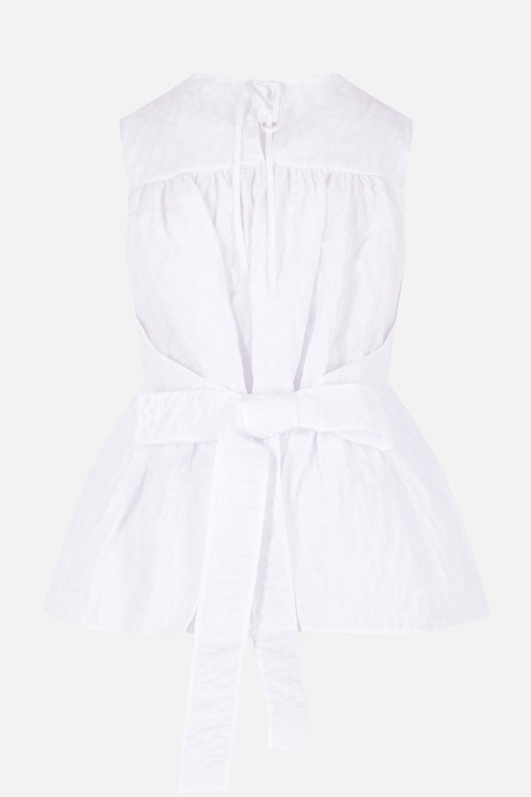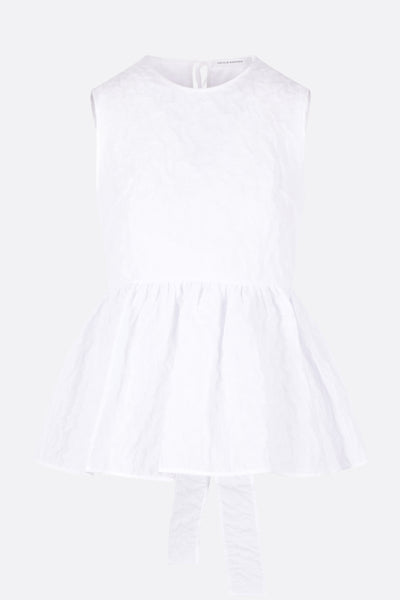 Top smanicato di Cecilie Bahnsen realizzato in tessuto Margueritte Cloqué color bianco. Caratterizzato da scollatura a giro, chiusura posteriore con lacci da annodare e fondo a peplo. Interno semi foderato.