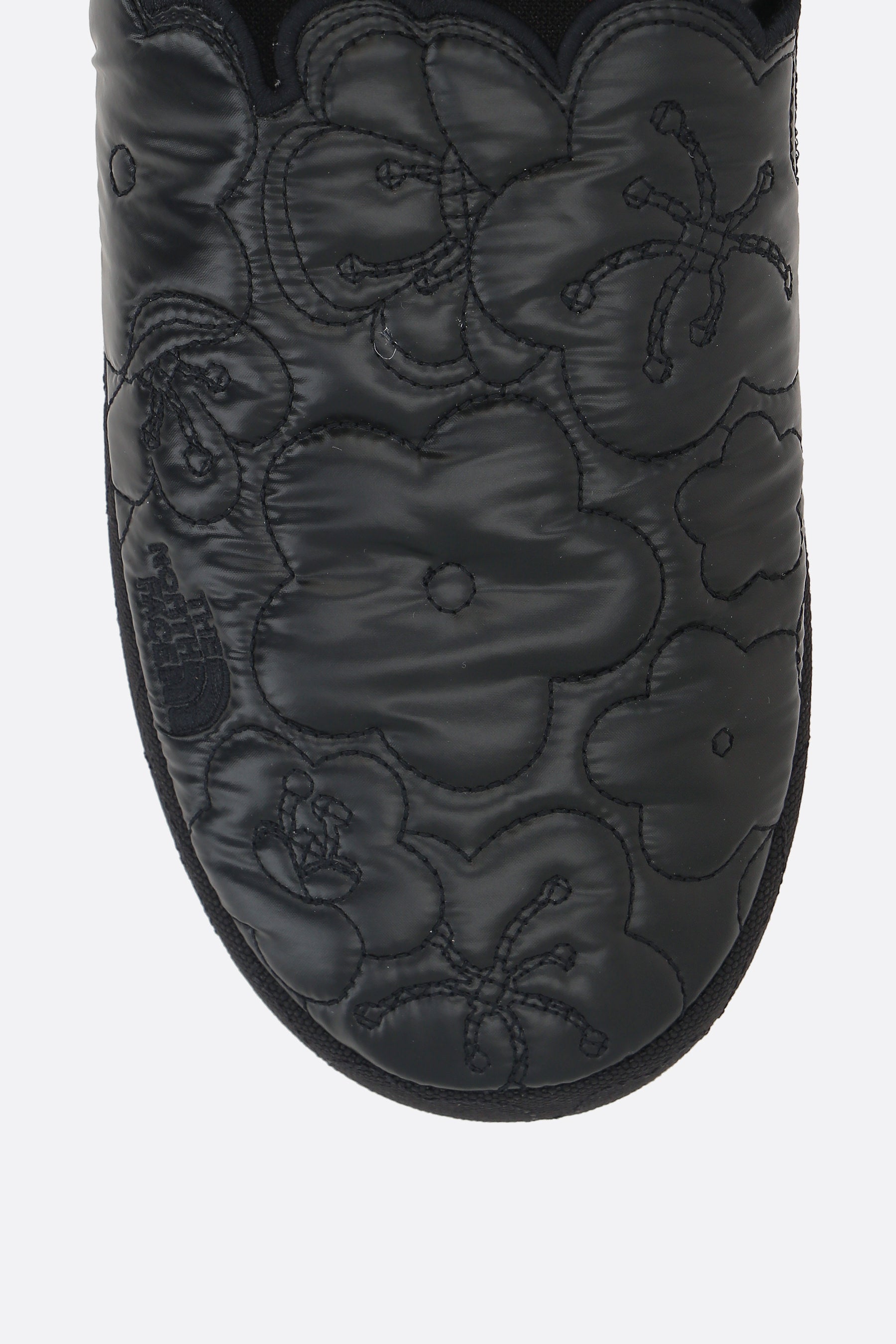 Slipper di Cecilie Bahnsen x The North Face realizzata in nylon matelassé color nero con design floreale. Caratterizzata da punta tonda, fodere in tessuto e suola in gomma.