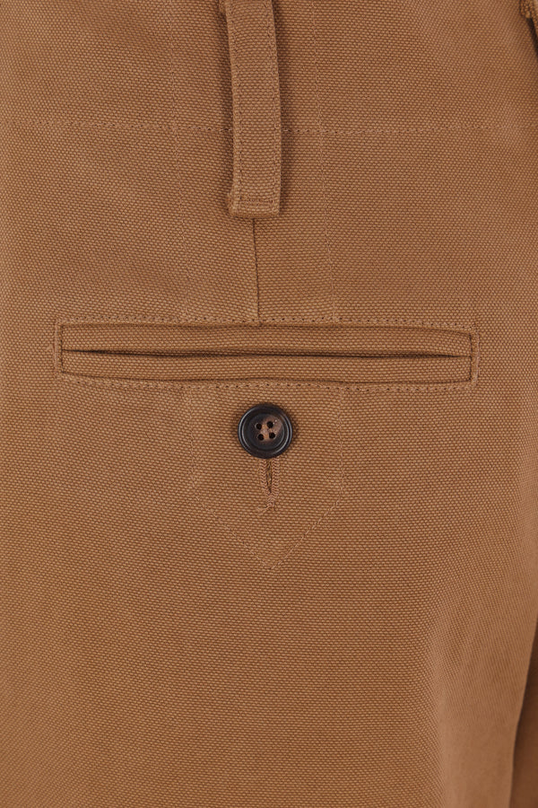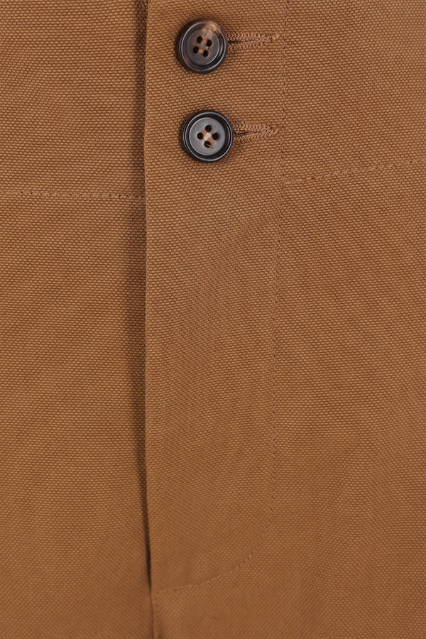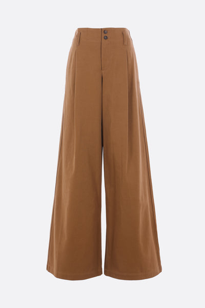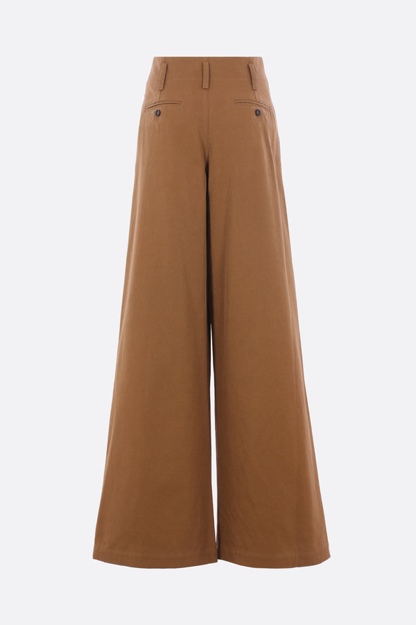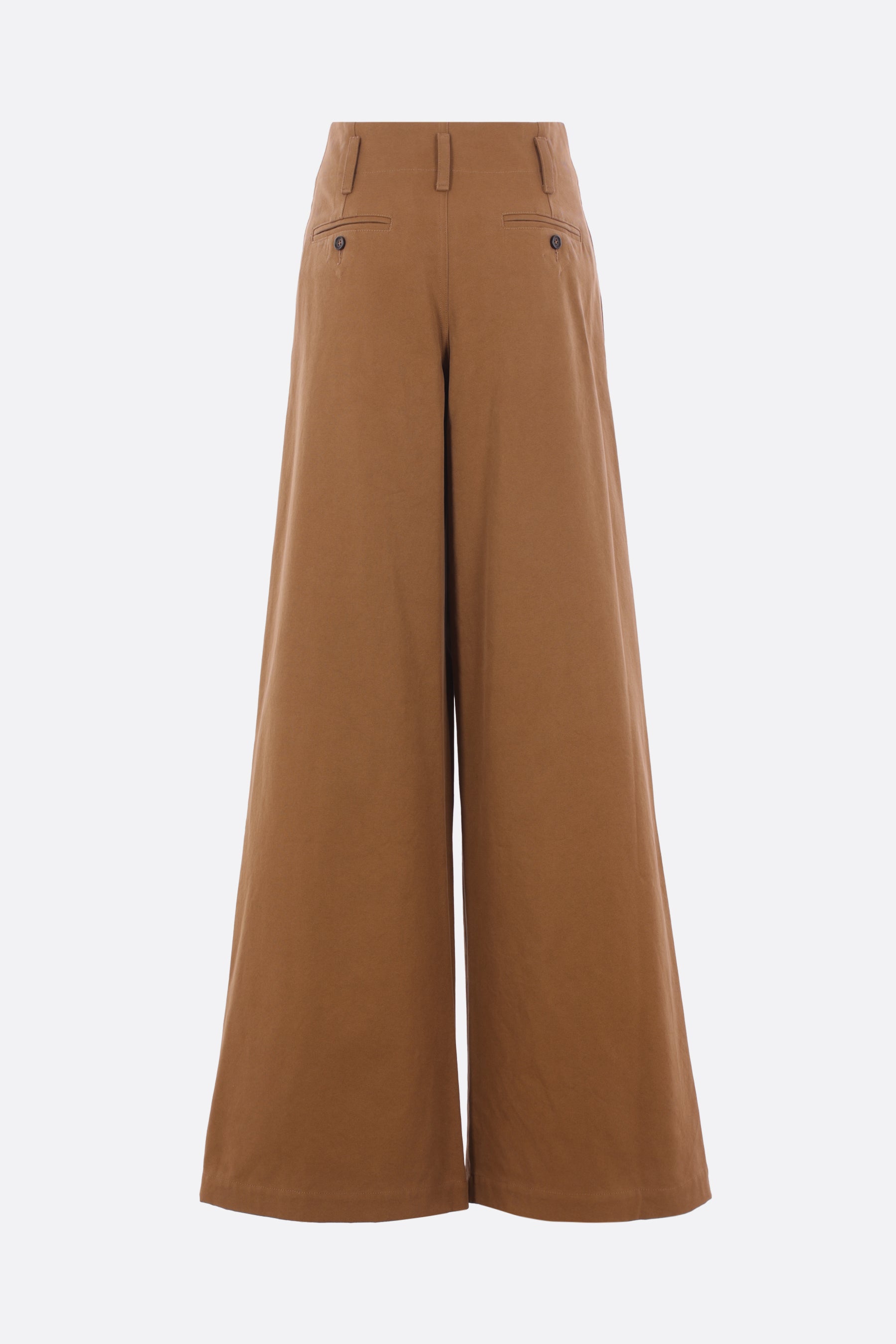 Pantalone palazzo di Chloé realizzato in tela di cotone color marrone chiaro. Caratterizzato da chiusura frontale con bottoni / zip, passanti per cintura, tasche multiple e pinces frontali.