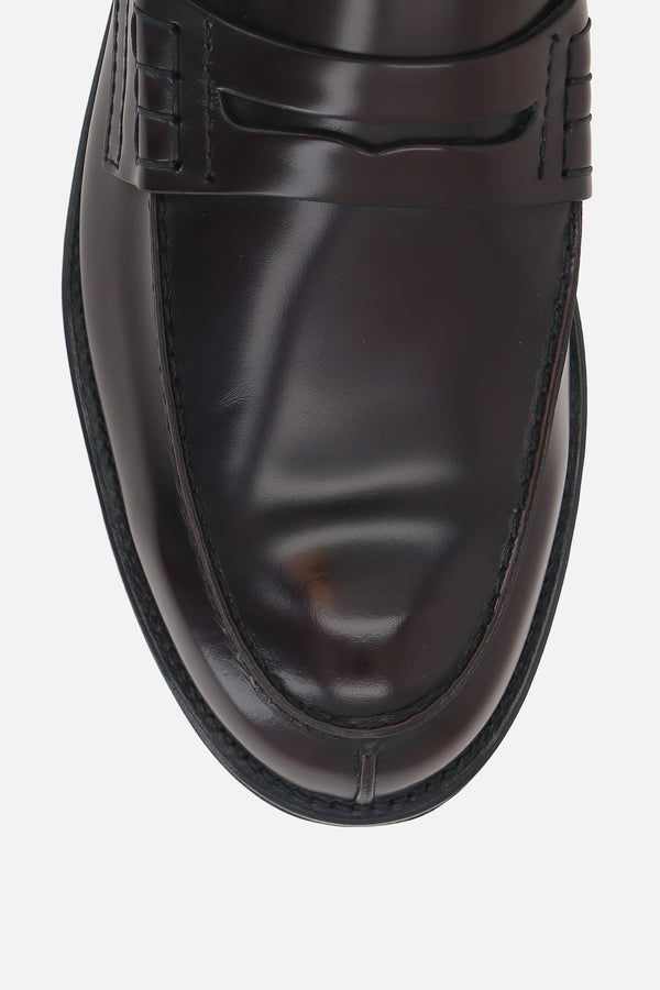Mocassino di Church's realizzato in pelle Bookbinder color borgogna con effetto sfumato. Caratterizzato da punta tonda, fodere in pelle e suola in cuoio.
