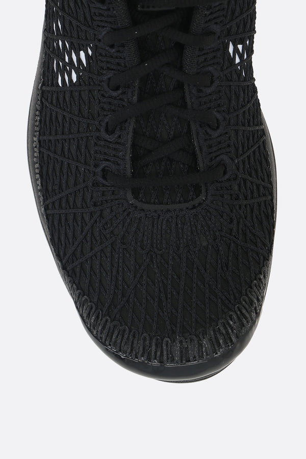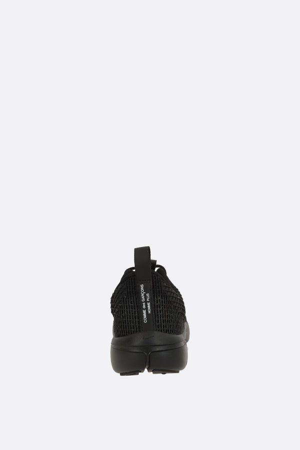 Sneaker low-top di Comme des Garçons Homme Plus disegnata in collaborazione con Nike e realizzata in rete color nero. Caratterizzata da chiusura con lacci, punta tonda, fodere in tessuto e suola texturizzata in gomma. Completa il design il logo Swoosh laterale / sul tallone e la stampa logo "Comme des Garçons Homme Plus" sul tallone.