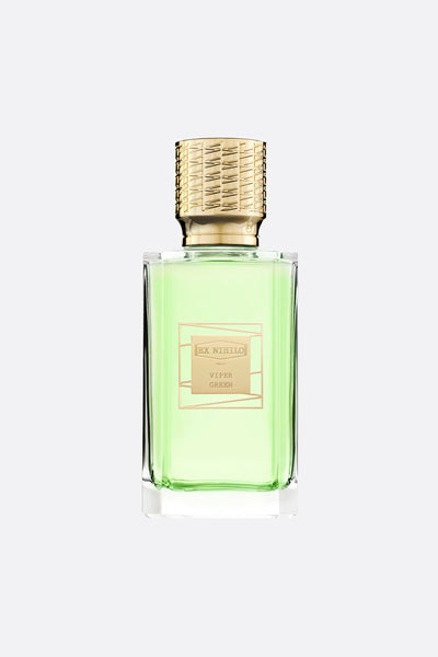 Eau de parfum di Ex Nihilo Paris da 100 ml. Note di testa: galbano, radice di angelica, mandarino verde; note di cuore: gelsomino Sambac, iris, rosyfolia; note di fondo: vetiver, patchouli, accordo talcato.