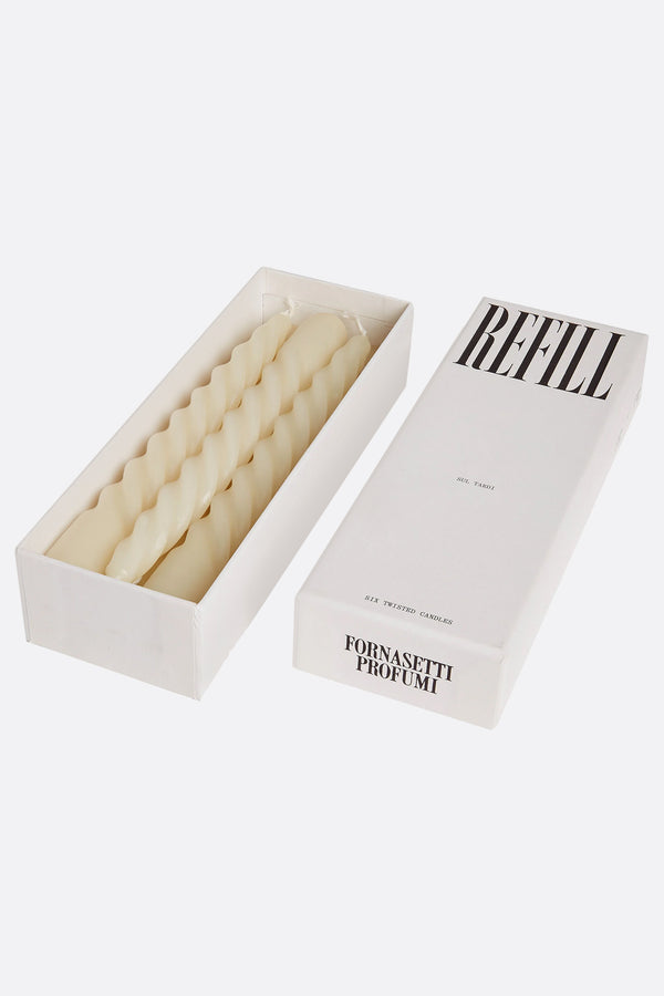Set di Fornasetti composto da sei candele refill Sul Tardi.La collezione Fornasetti Profumi utilizza fragranze con ingredienti ecocompatibili per una combustione non inquinante.
