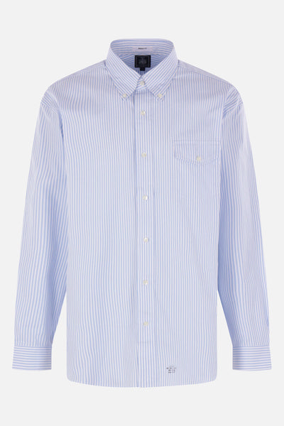 Camicia di J. Press realizzata in cotone Oxford color azzurro. Caratterizzata da colletto button-down, chiusura frontale con bottoni, tasca con patta sul petto, maniche lunghe con polsini abbottonati e fondo arrotondato con stampa logo frontale.
