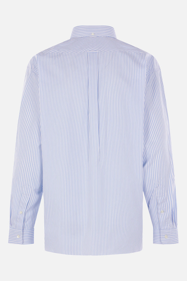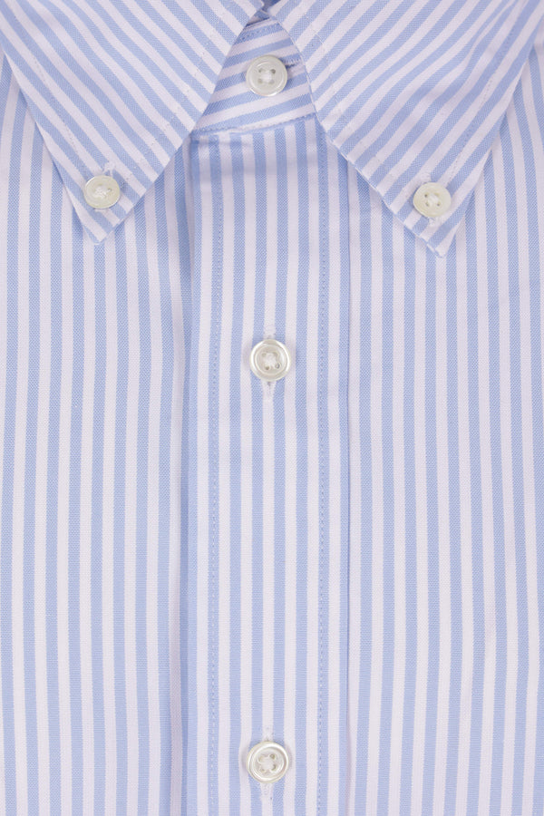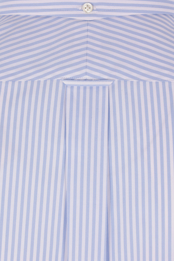 Camicia di J. Press realizzata in cotone Oxford a righe color bianco e azzurro. Caratterizzata da colletto button-down, chiusura frontale con bottoni, tasca con patta sul petto, maniche lunghe con polsini abbottonati e fondo arrotondato con stampa logo frontale.